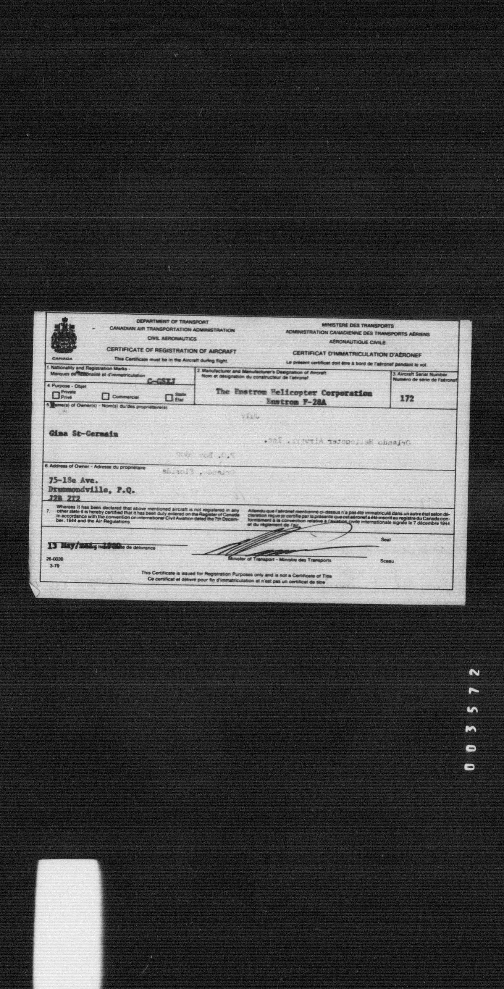 Department of Transport : Civil aircraft registration, inspection and operation files, block 5008, 1920-1986 - 8462