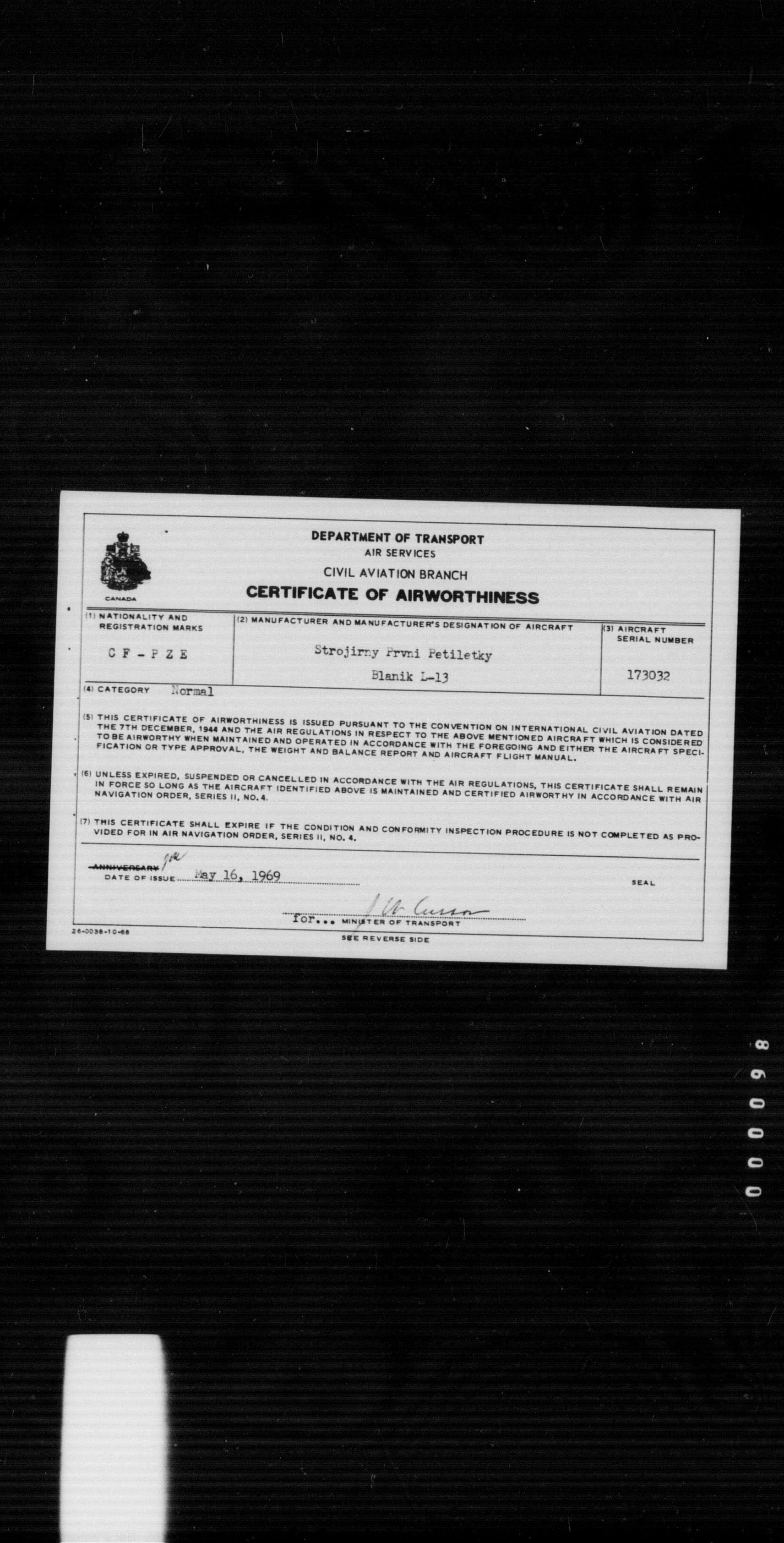 Department of Transport : Civil aircraft registration, inspection and operation files, block 5008, 1920-1986 - 8466