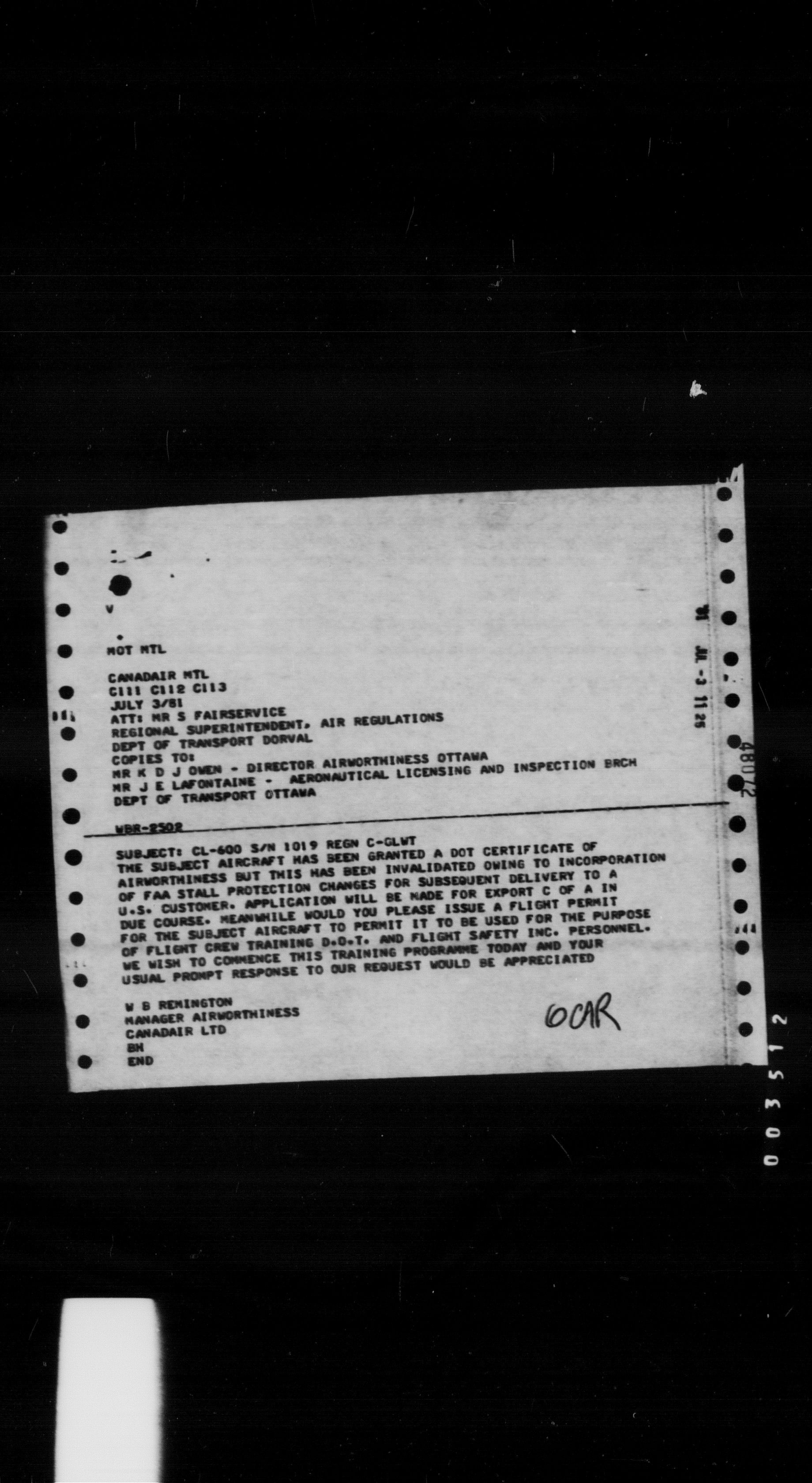 Department of Transport : Civil aircraft registration, inspection and operation files, block 5008, 1920-1986 - 8468