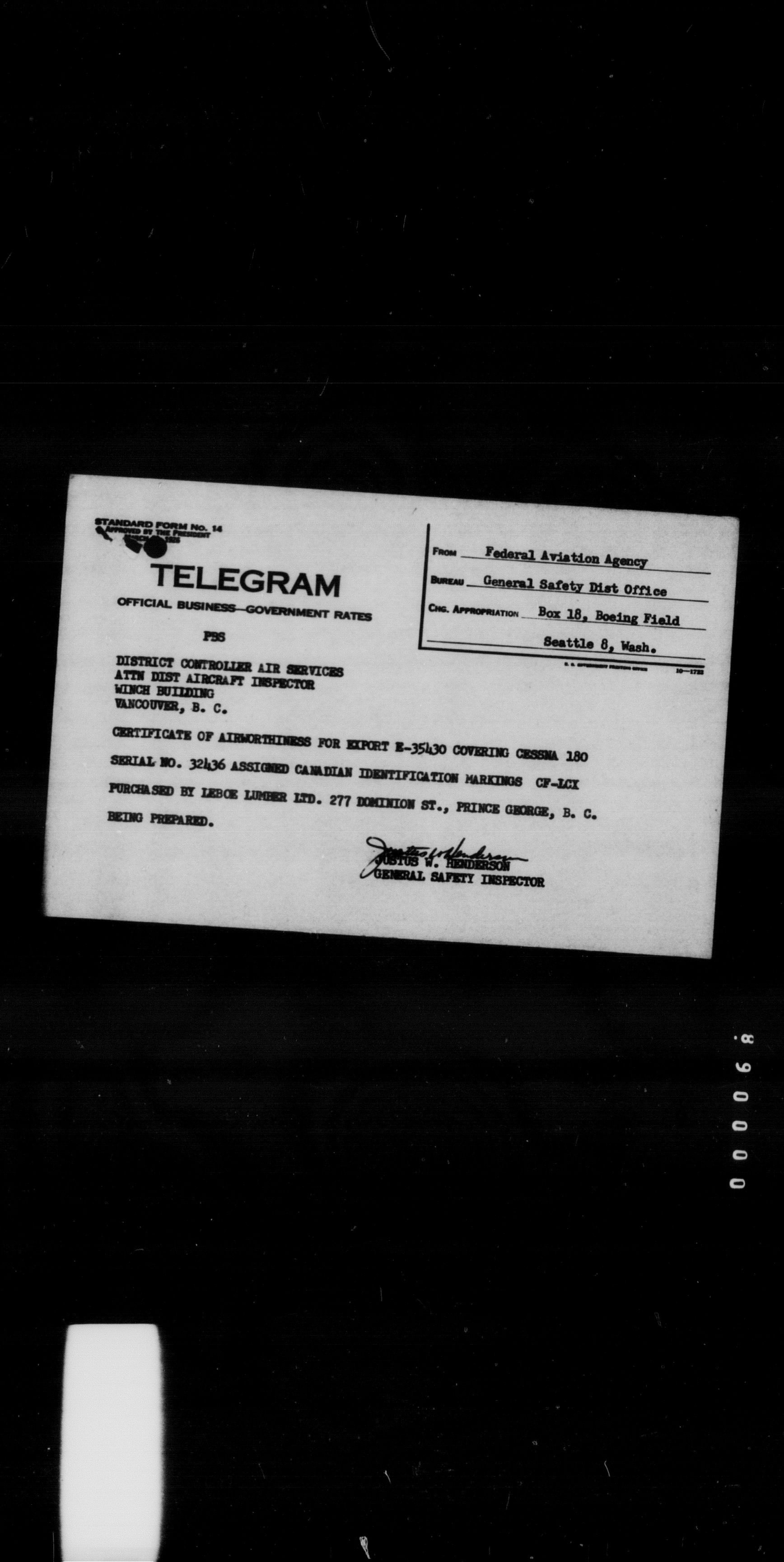 Department of Transport : Civil aircraft registration, inspection and operation files, block 5008, 1920-1986 - 8471