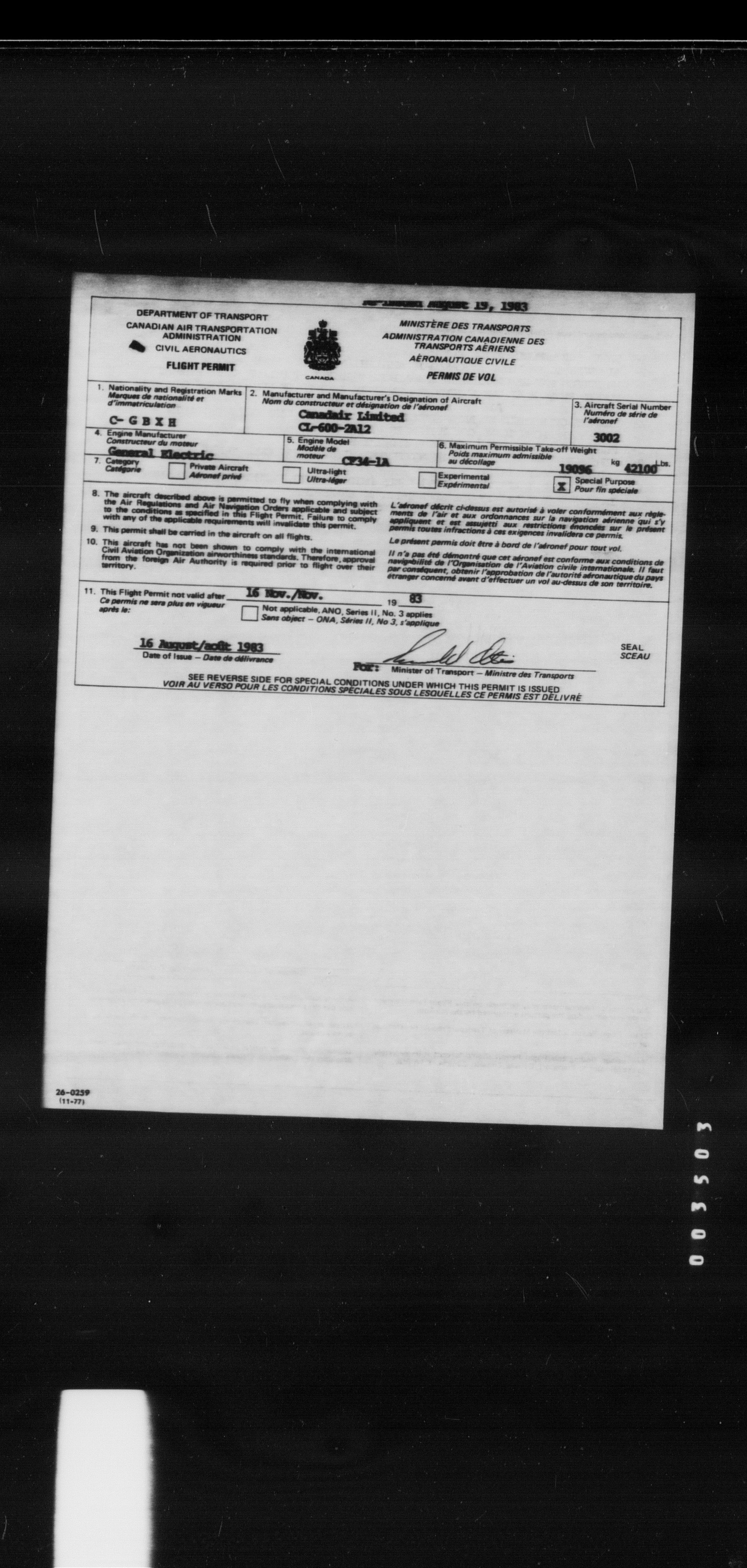Department of Transport : Civil aircraft registration, inspection and operation files, block 5008, 1920-1986 - 8472
