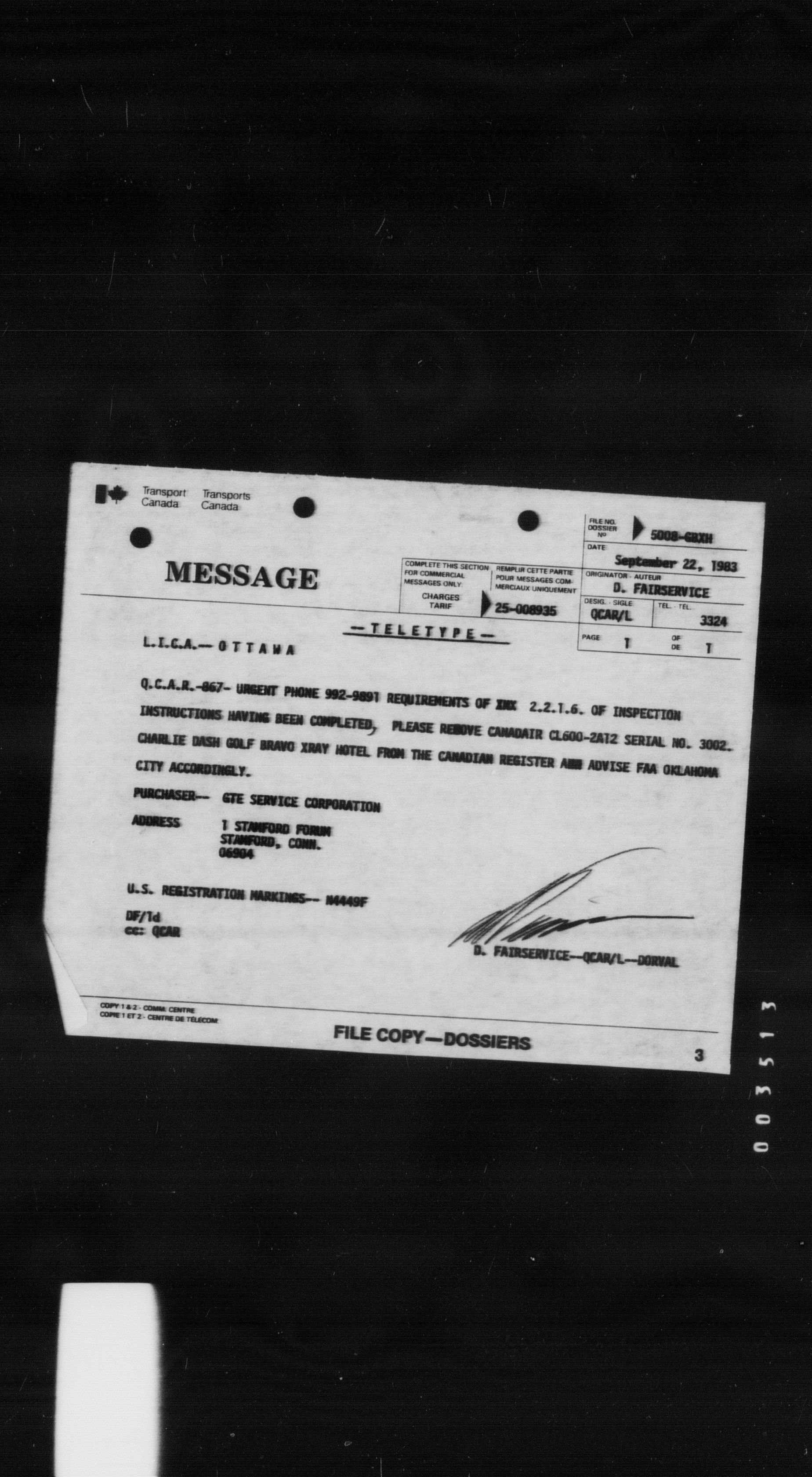 Department of Transport : Civil aircraft registration, inspection and operation files, block 5008, 1920-1986 - 8472