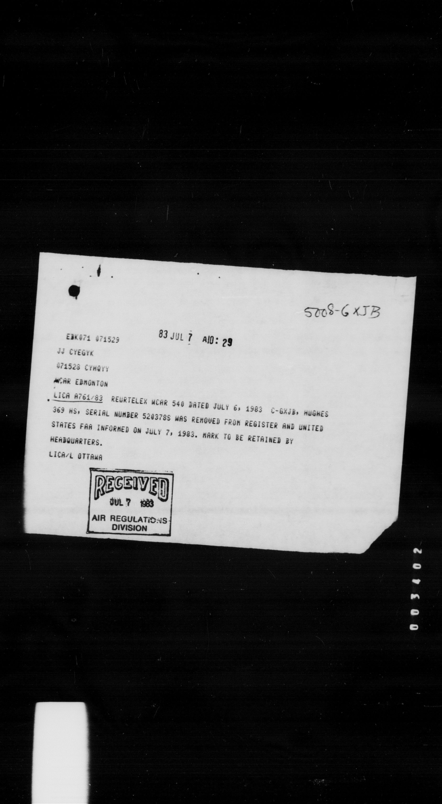 Department of Transport : Civil aircraft registration, inspection and operation files, block 5008, 1920-1986 - 8473
