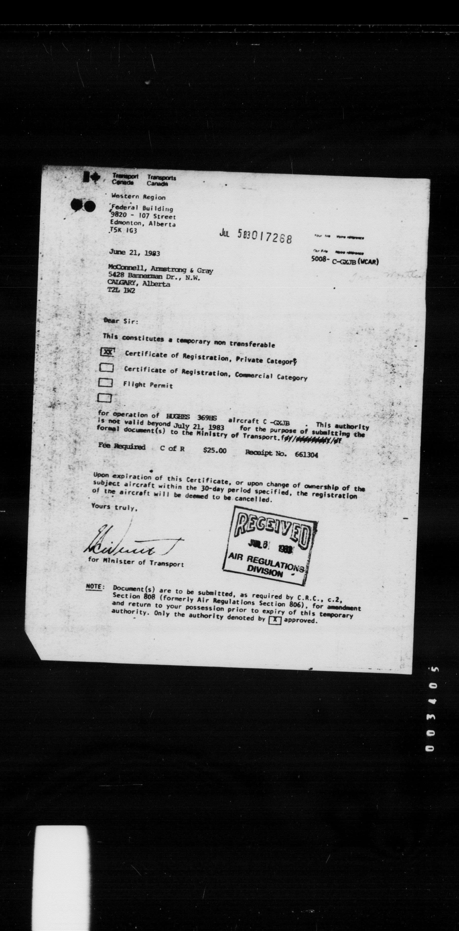 Department of Transport : Civil aircraft registration, inspection and operation files, block 5008, 1920-1986 - 8473