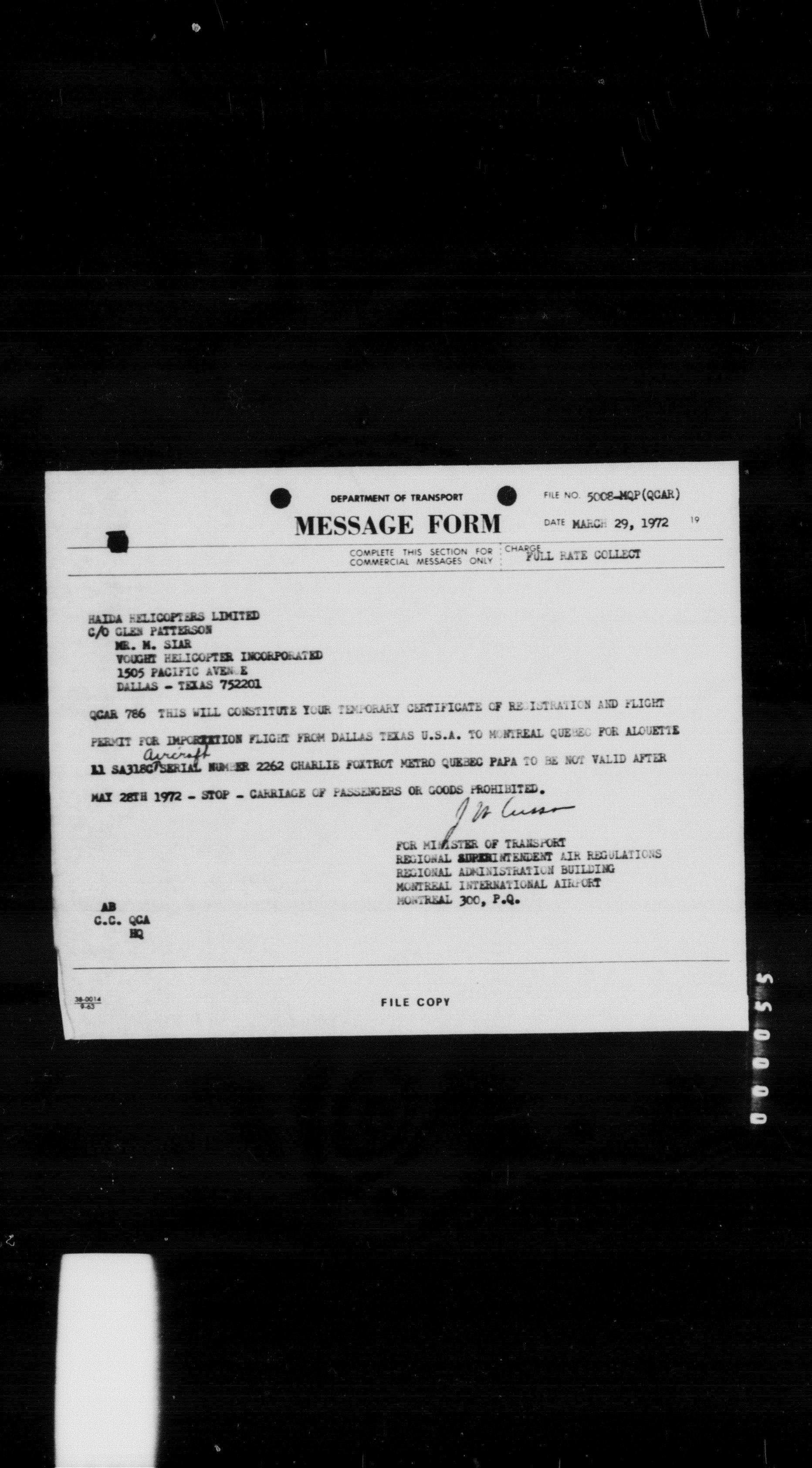 Department of Transport : Civil aircraft registration, inspection and operation files, block 5008, 1920-1986 - 8475