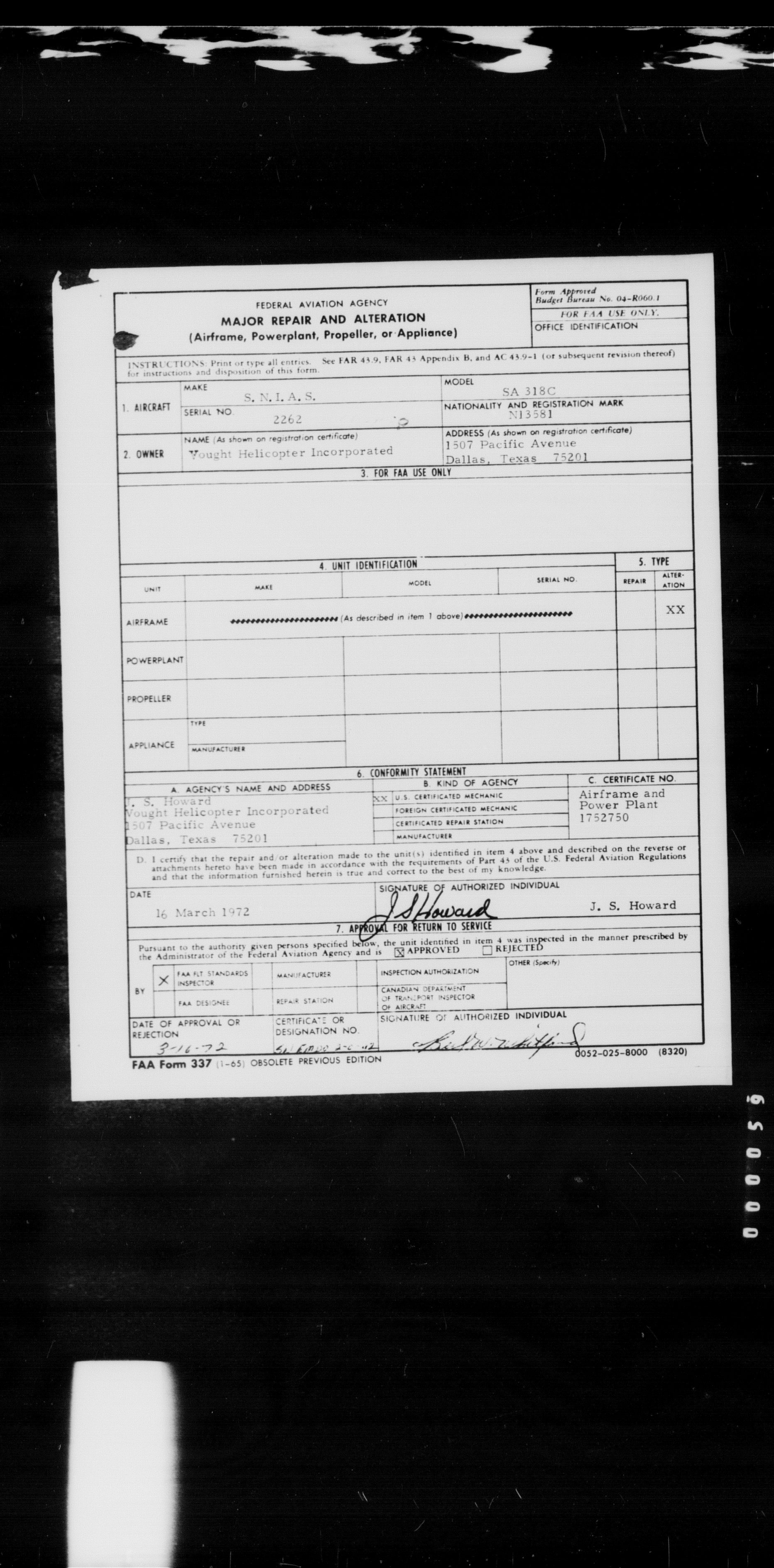 Department of Transport : Civil aircraft registration, inspection and operation files, block 5008, 1920-1986 - 8475