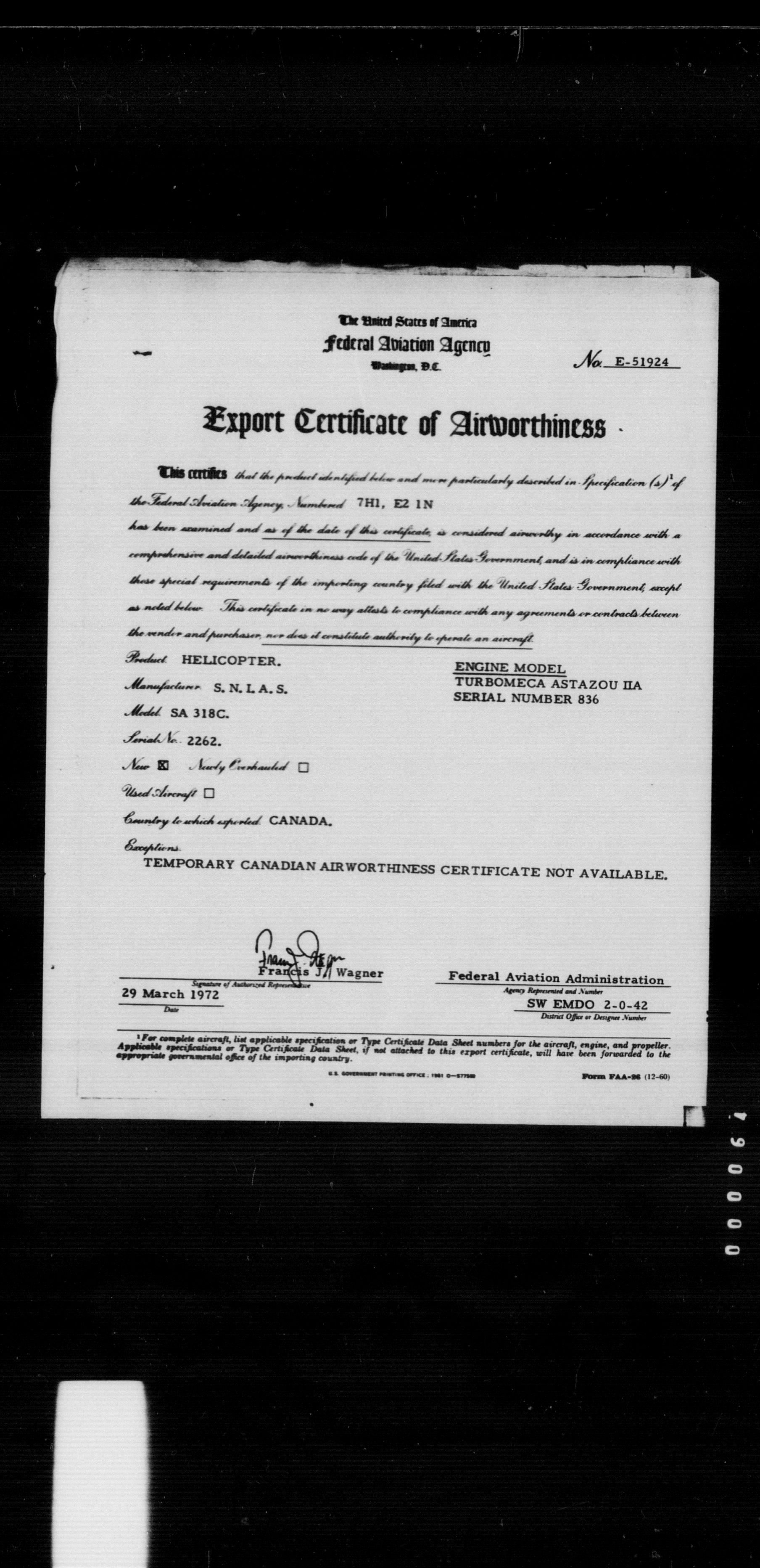 Department of Transport : Civil aircraft registration, inspection and operation files, block 5008, 1920-1986 - 8475