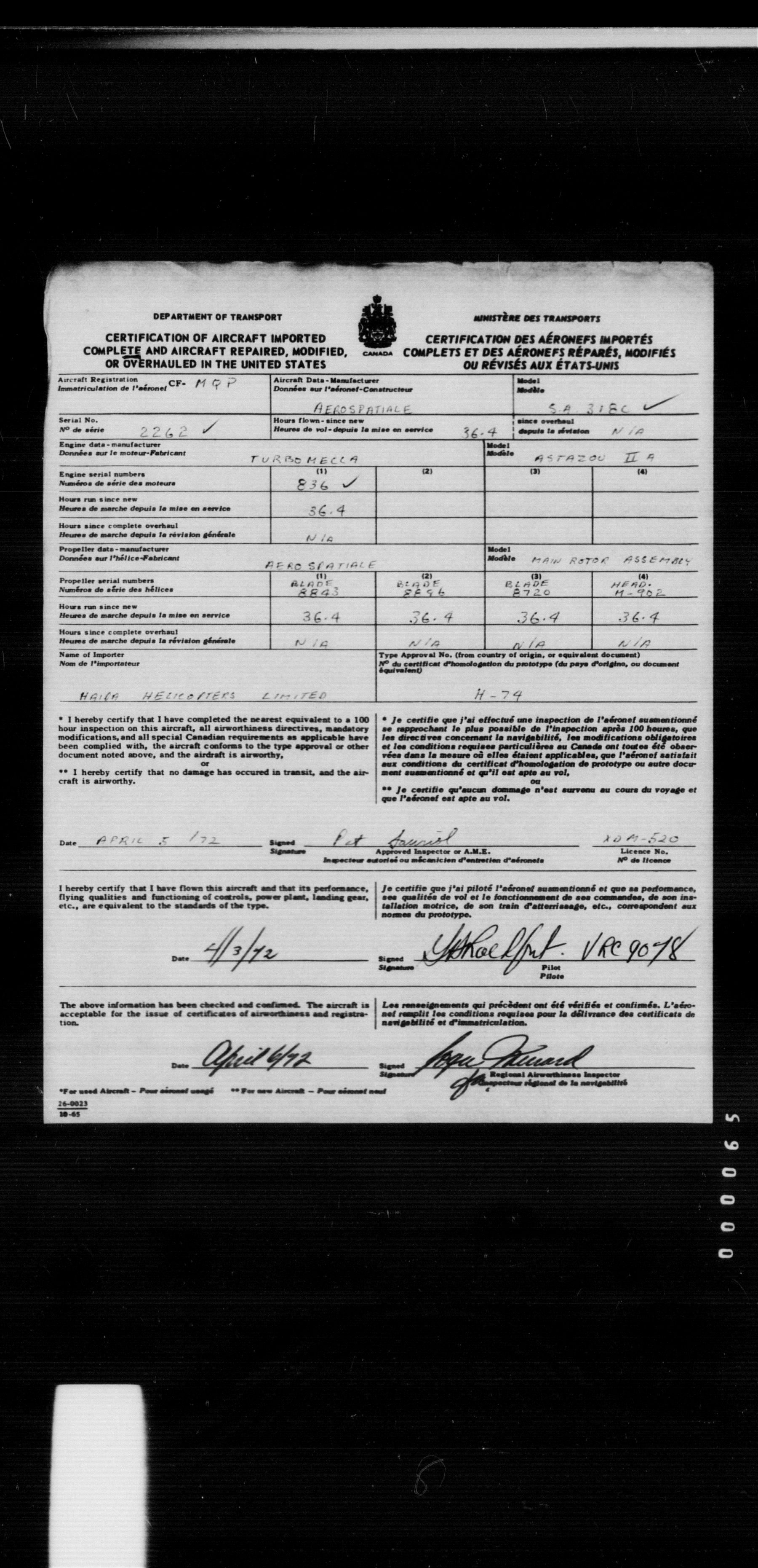 Department of Transport : Civil aircraft registration, inspection and operation files, block 5008, 1920-1986 - 8475