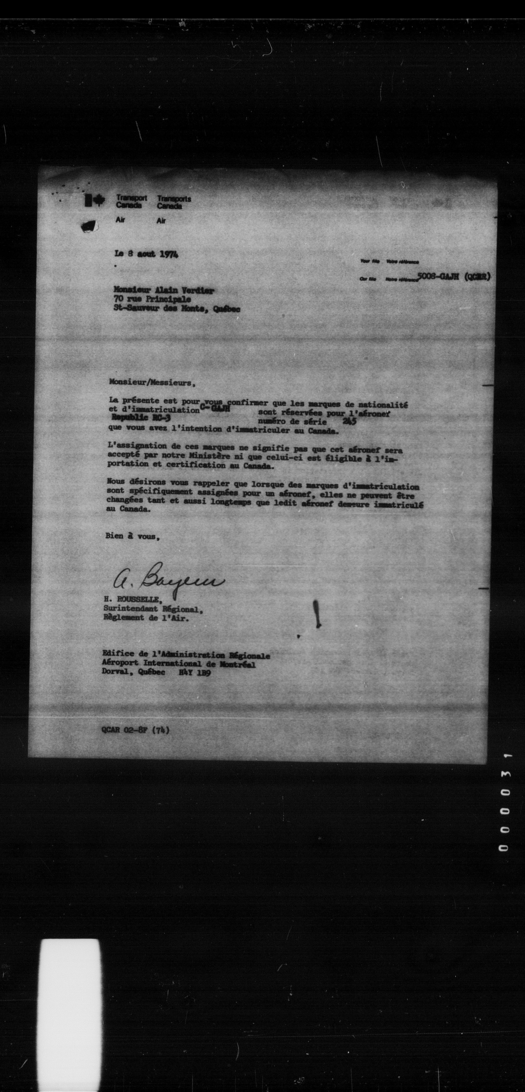 Department of Transport : Civil aircraft registration, inspection and operation files, block 5008, 1920-1986 - 8477