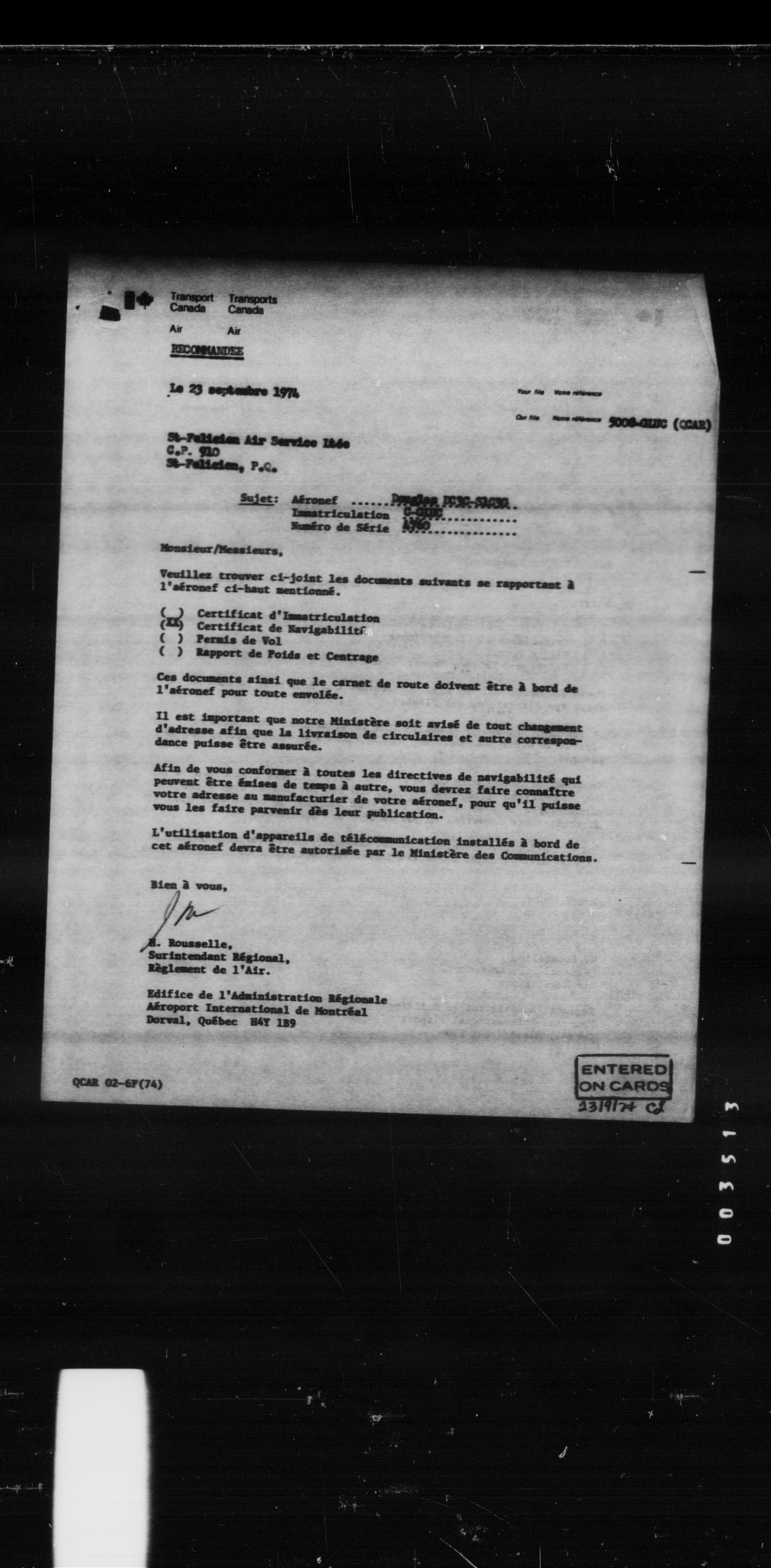Department of Transport : Civil aircraft registration, inspection and operation files, 1920-1986 : T-8477