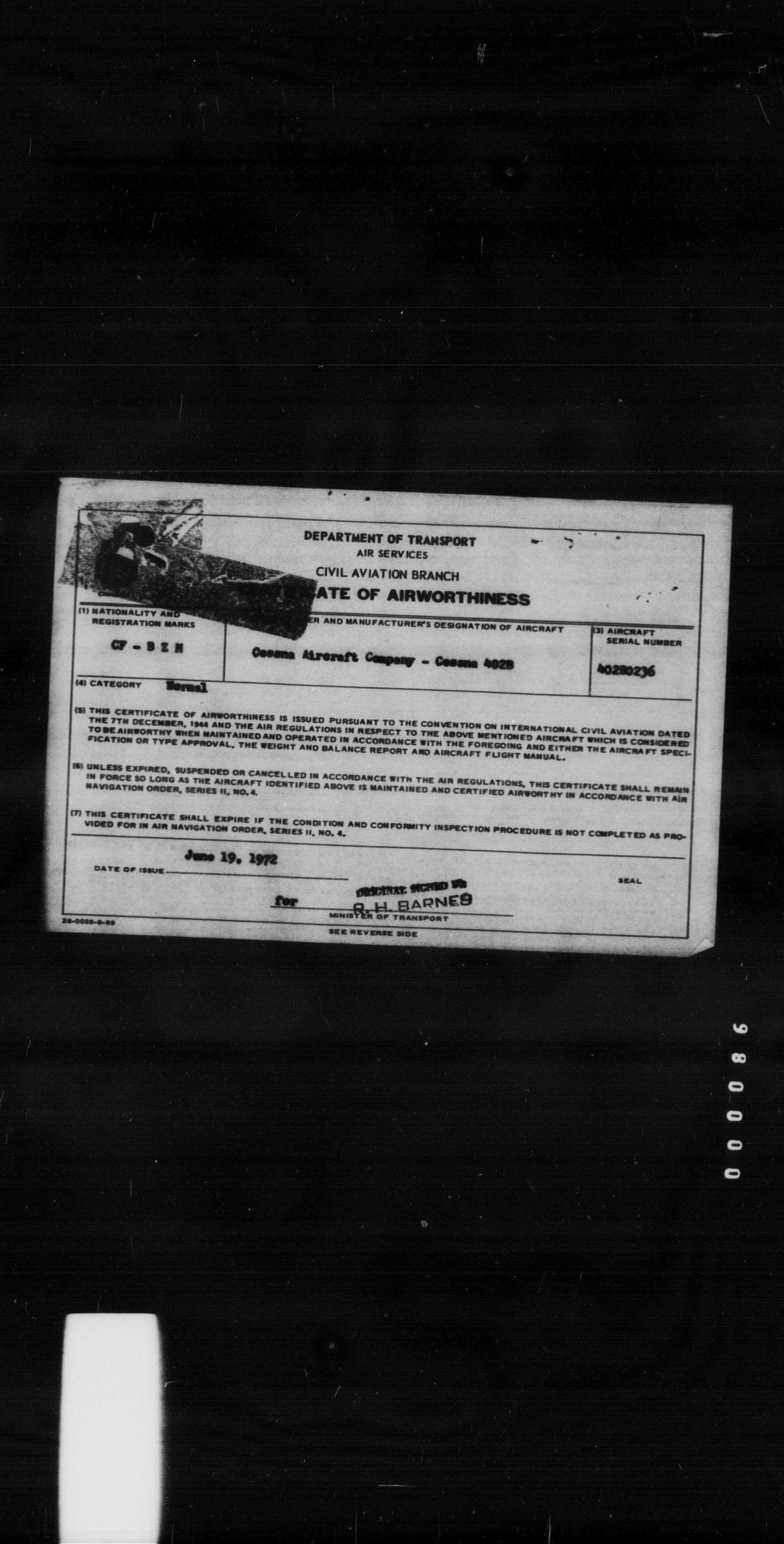 Department of Transport : Civil aircraft registration, inspection and operation files, block 5008, 1920-1986 - 8479
