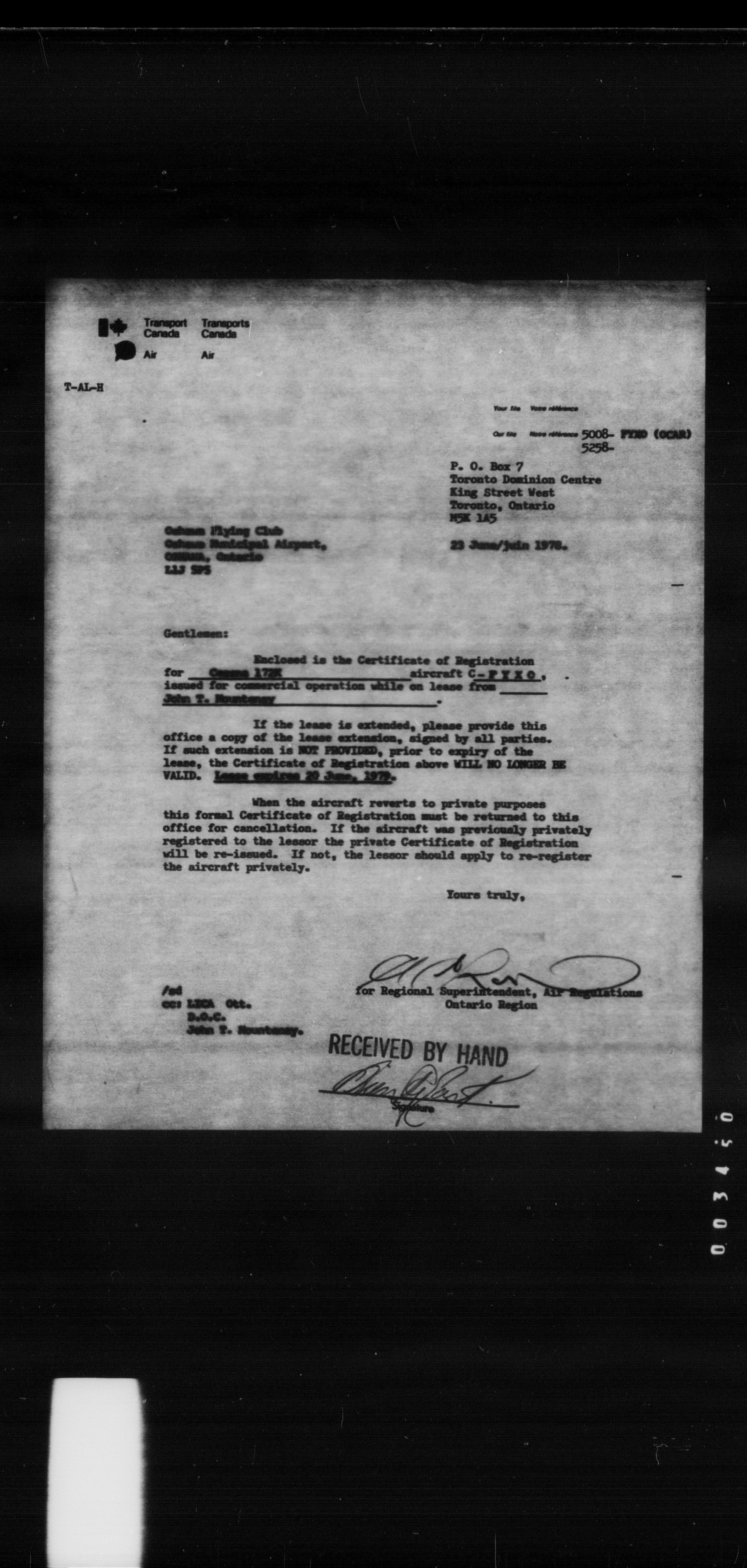 Department of Transport : Civil aircraft registration, inspection and operation files, block 5008, 1920-1986 - 8481