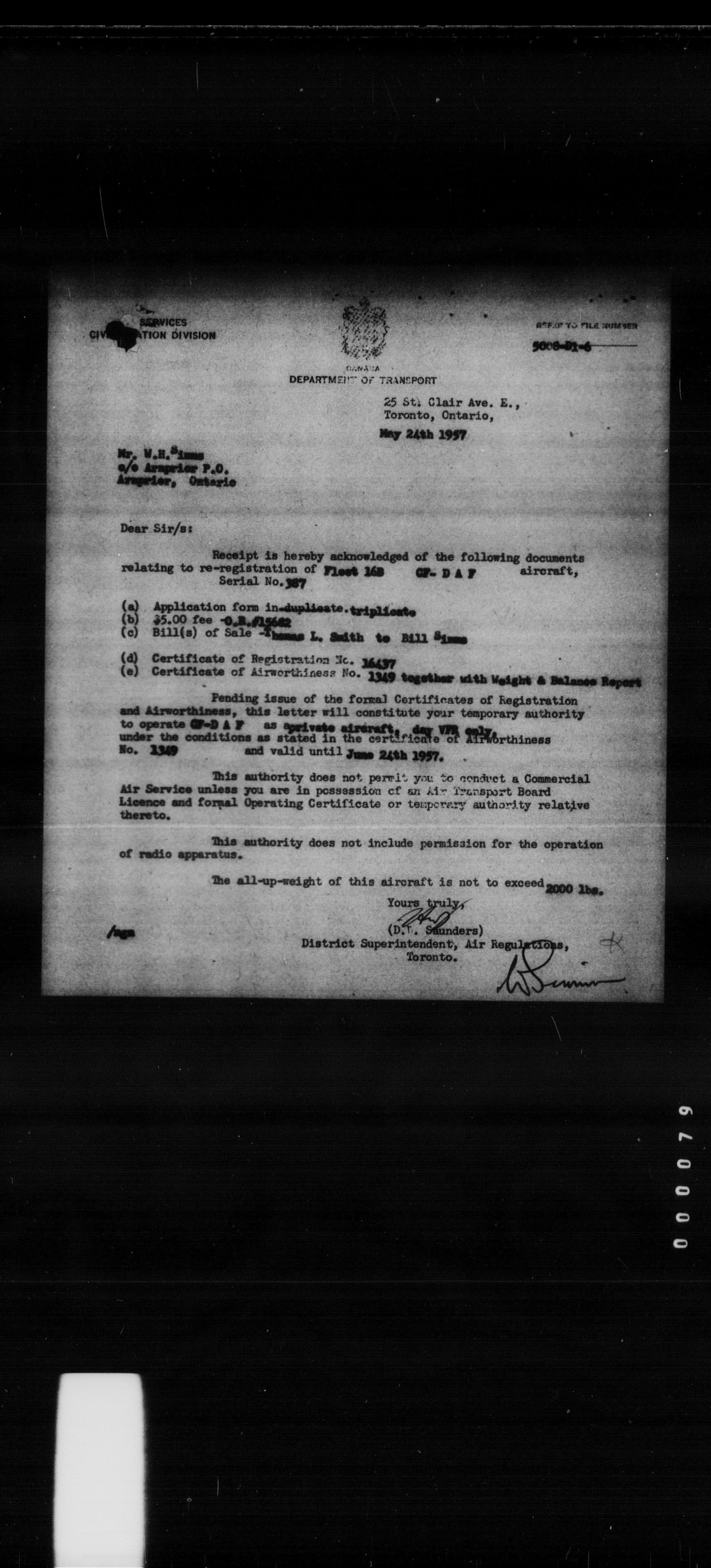 Department of Transport : Civil aircraft registration, inspection and operation files, block 5008, 1920-1986 - 8484