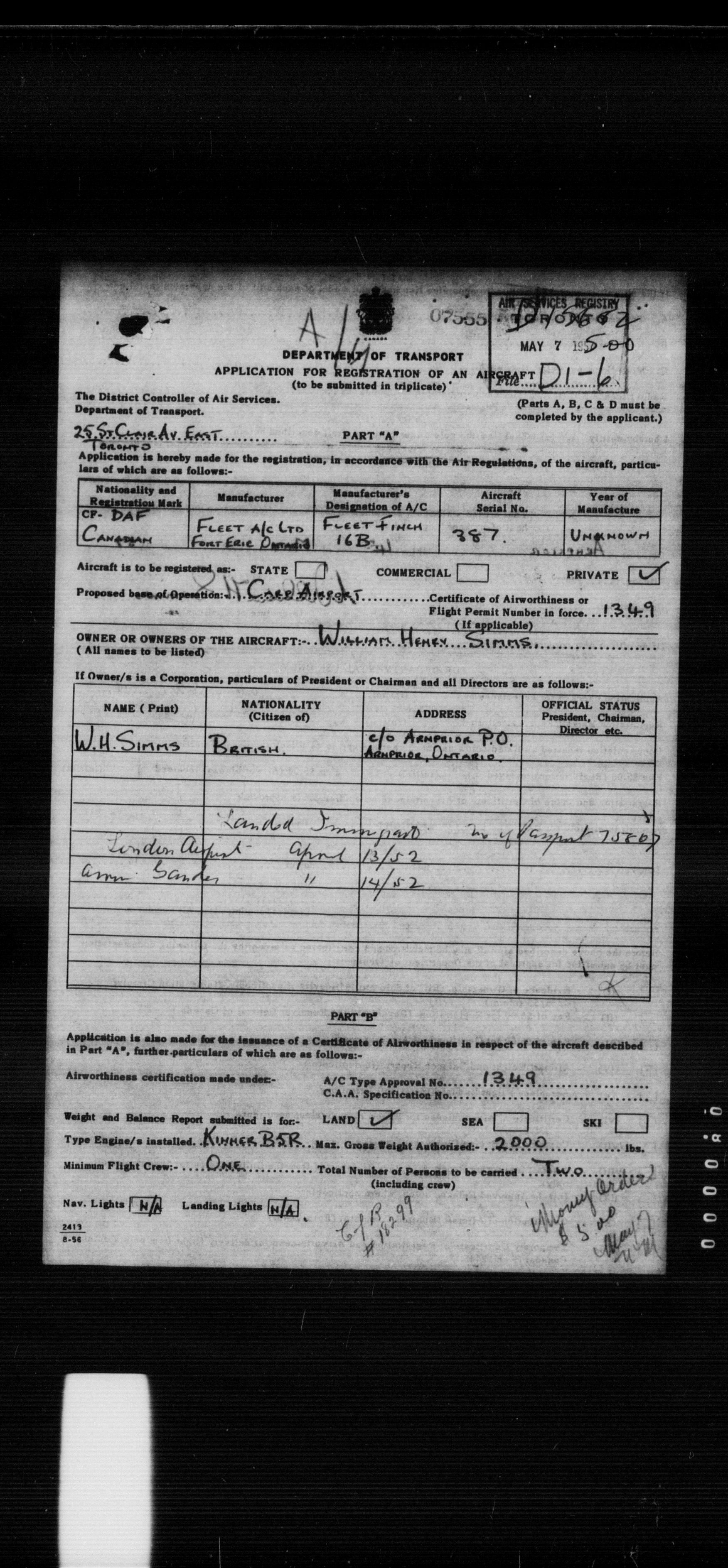 Department of Transport : Civil aircraft registration, inspection and operation files, block 5008, 1920-1986 - 8484