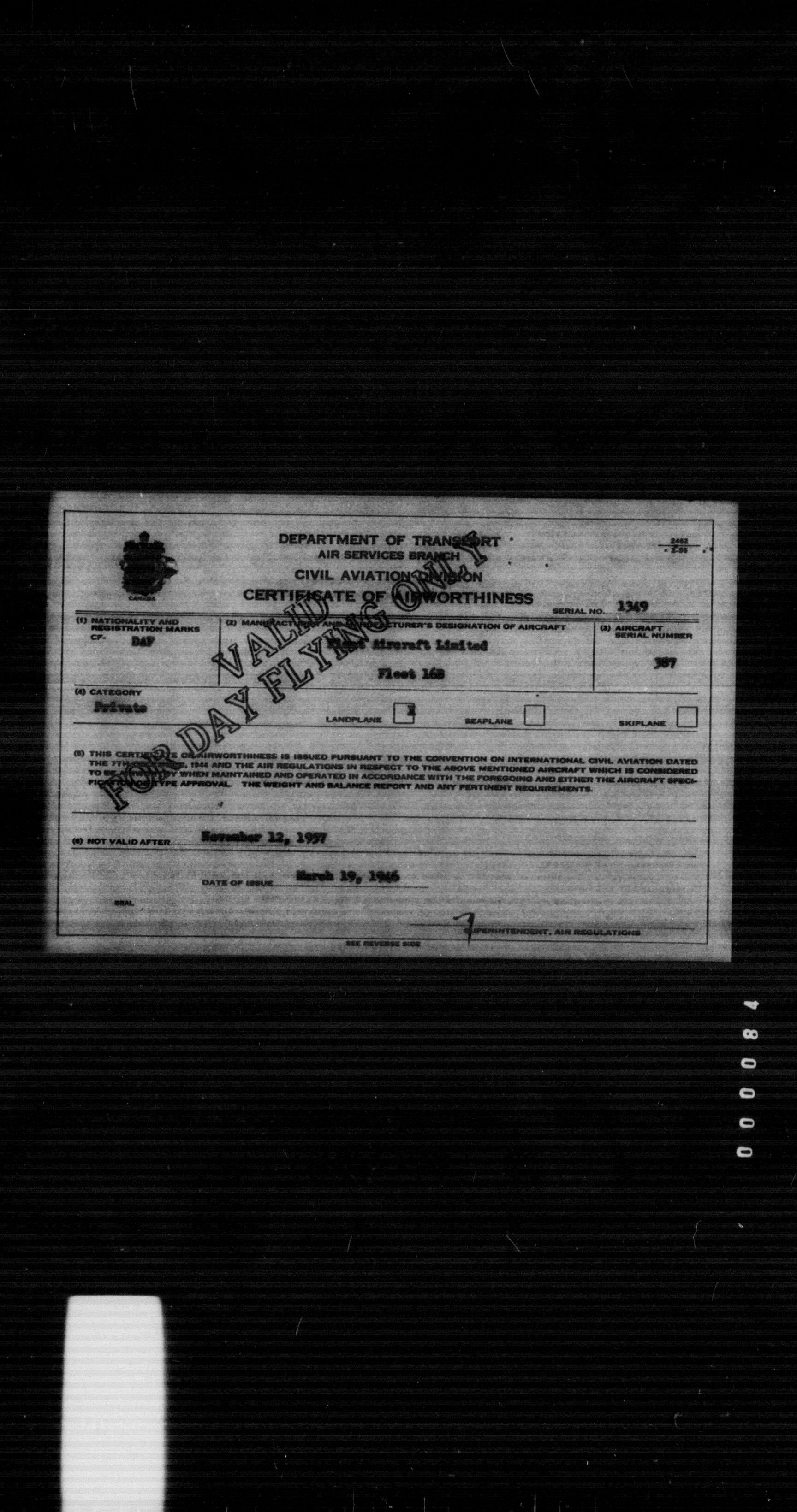 Department of Transport : Civil aircraft registration, inspection and operation files, block 5008, 1920-1986 - 8484