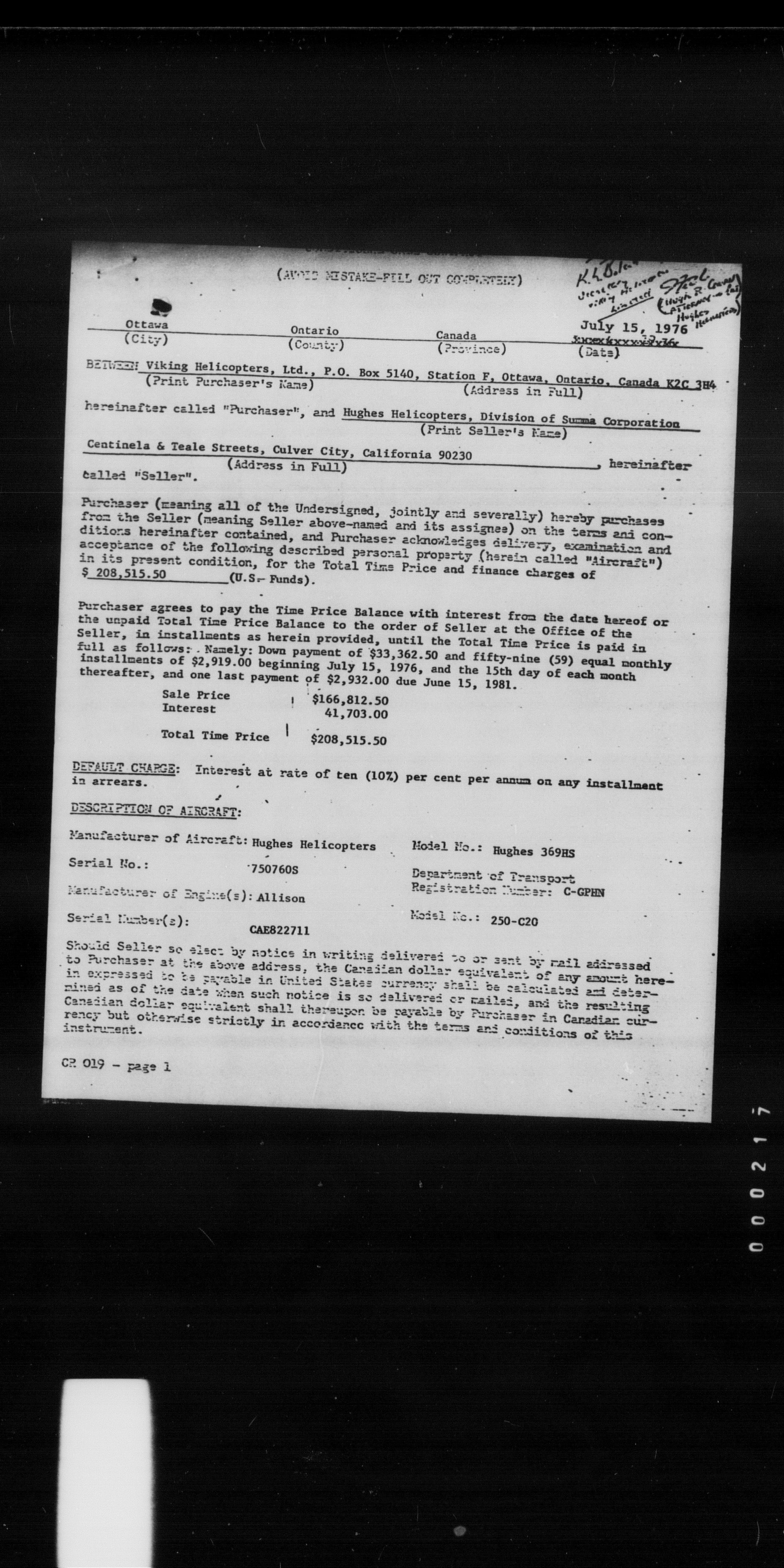 Department of Transport : Civil aircraft registration, inspection and operation files, block 5008, 1920-1986 - 8487