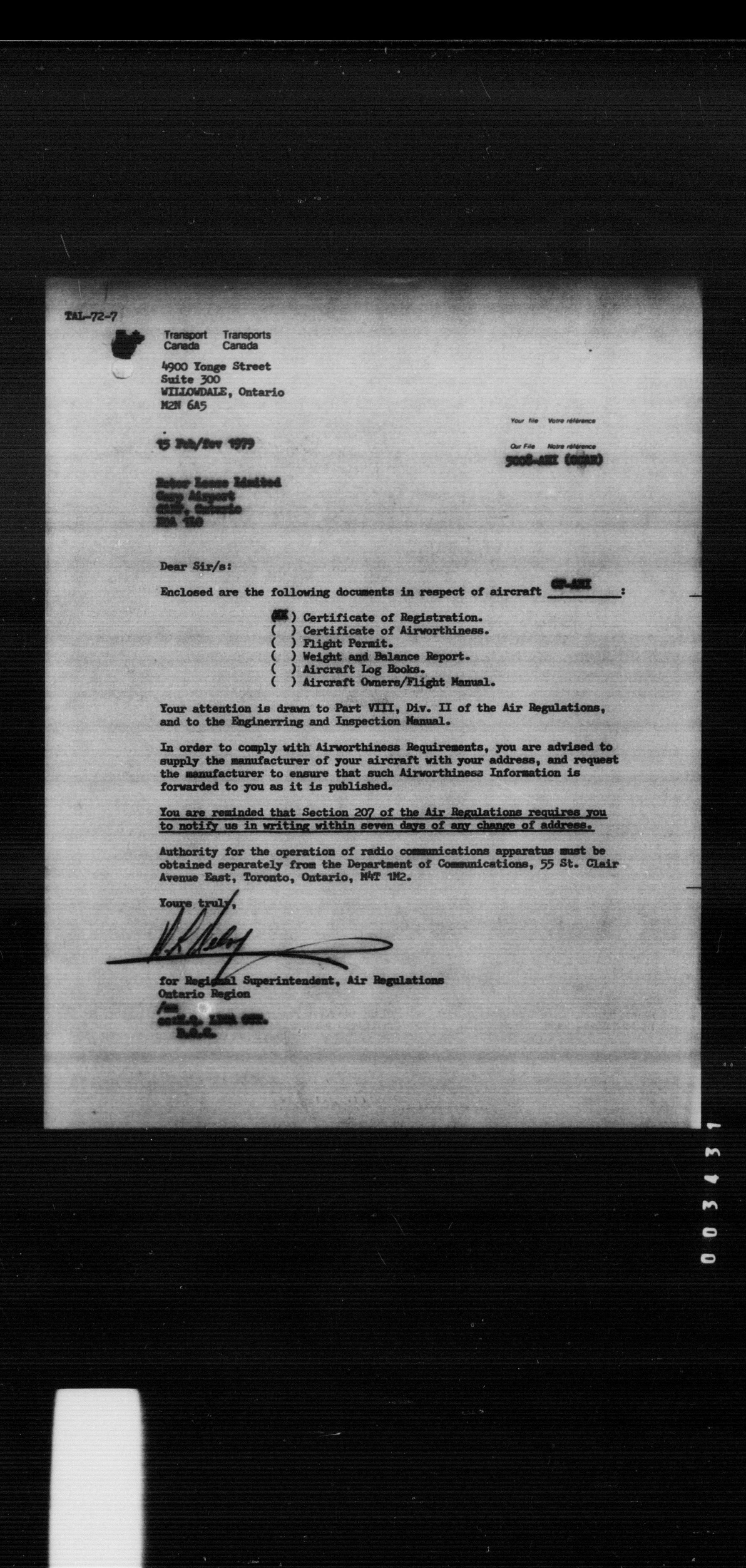 Department of Transport : Civil aircraft registration, inspection and operation files, block 5008, 1920-1986 - 8487
