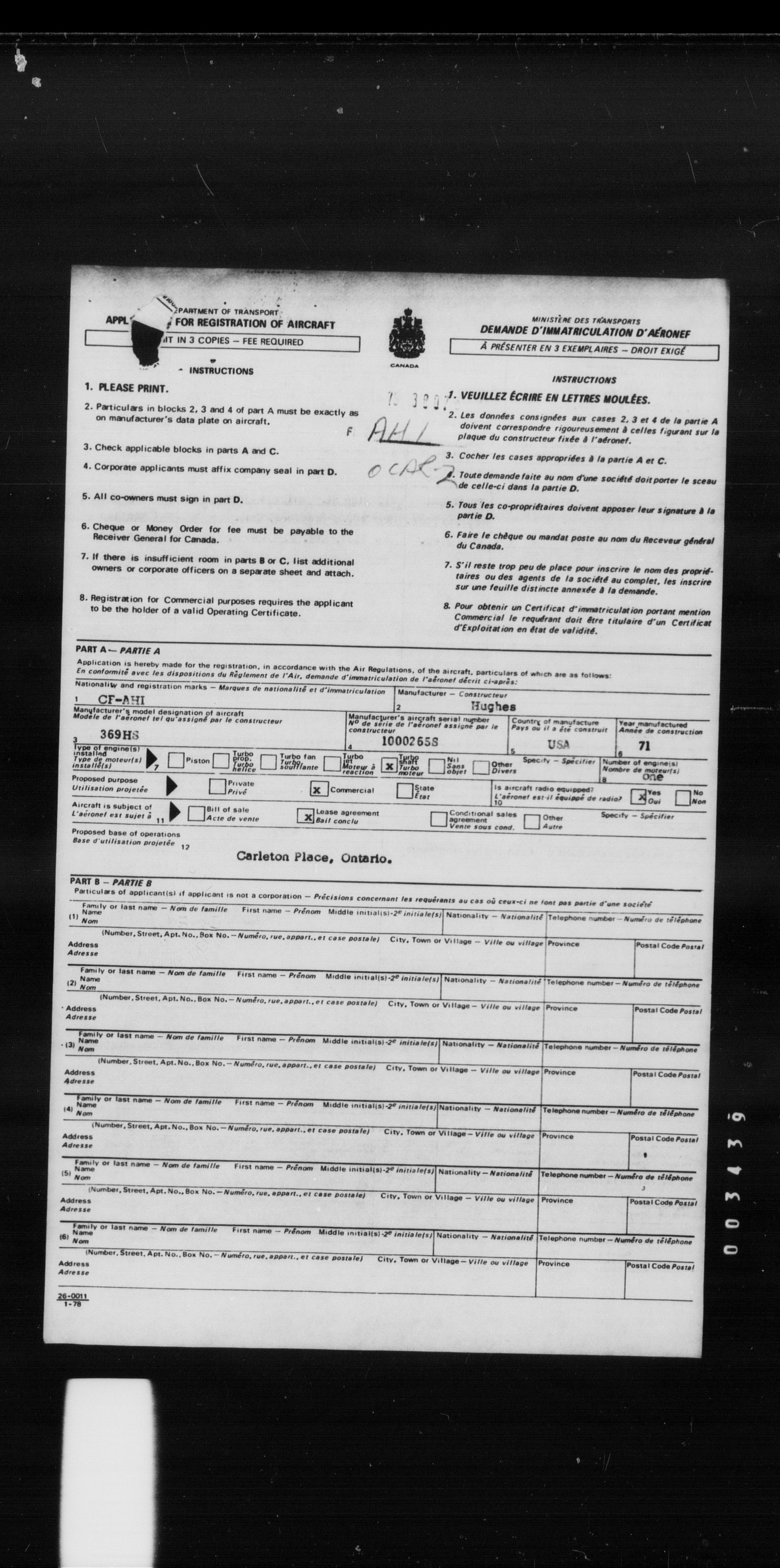 Department of Transport : Civil aircraft registration, inspection and operation files, 1920-1986 : T-8487
