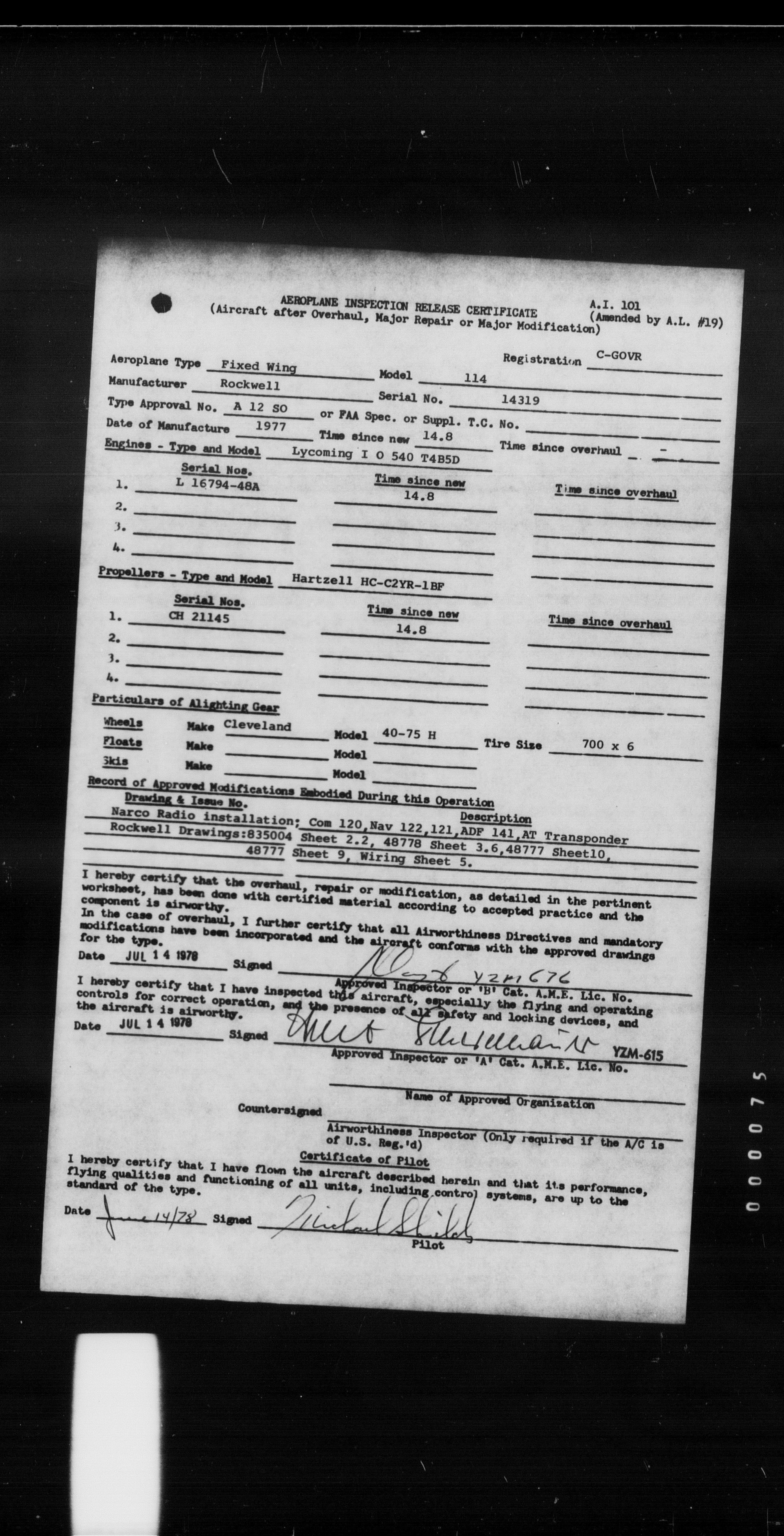 Department of Transport : Civil aircraft registration, inspection and operation files, block 5008, 1920-1986 - 8487