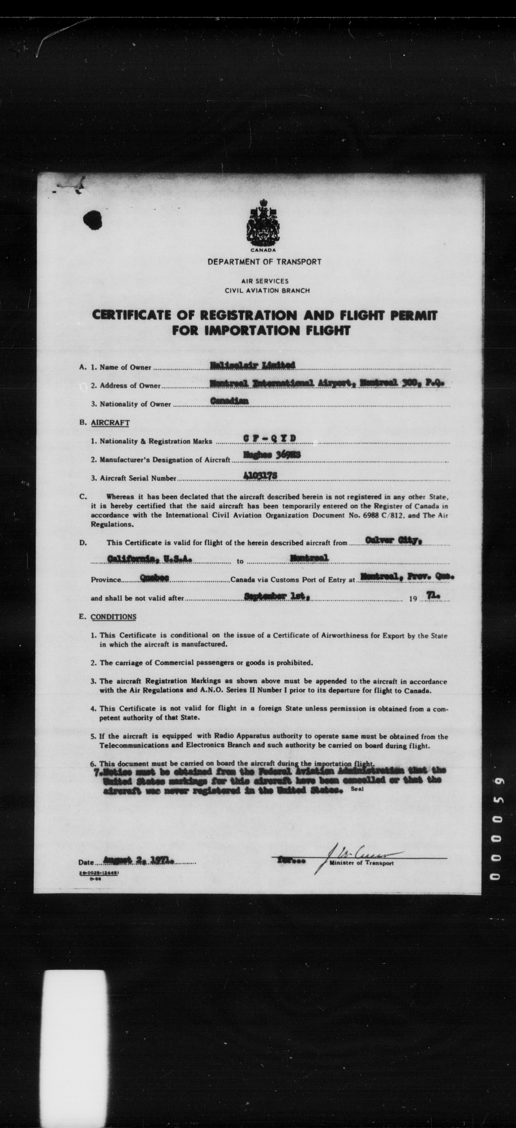 Department of Transport : Civil aircraft registration, inspection and operation files, 1920-1986 : T-8490