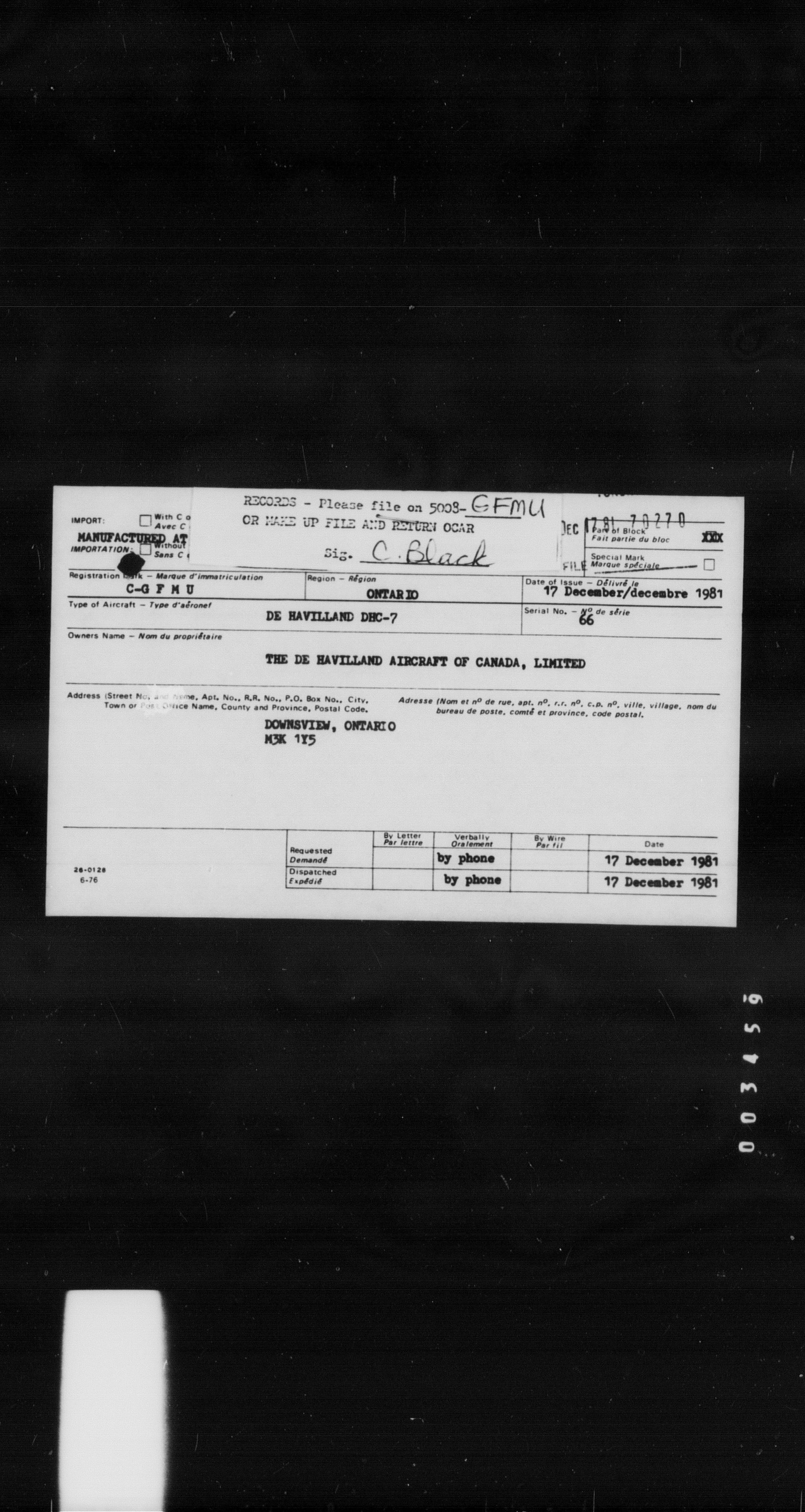 Department of Transport : Civil aircraft registration, inspection and operation files, block 5008, 1920-1986 - 8491