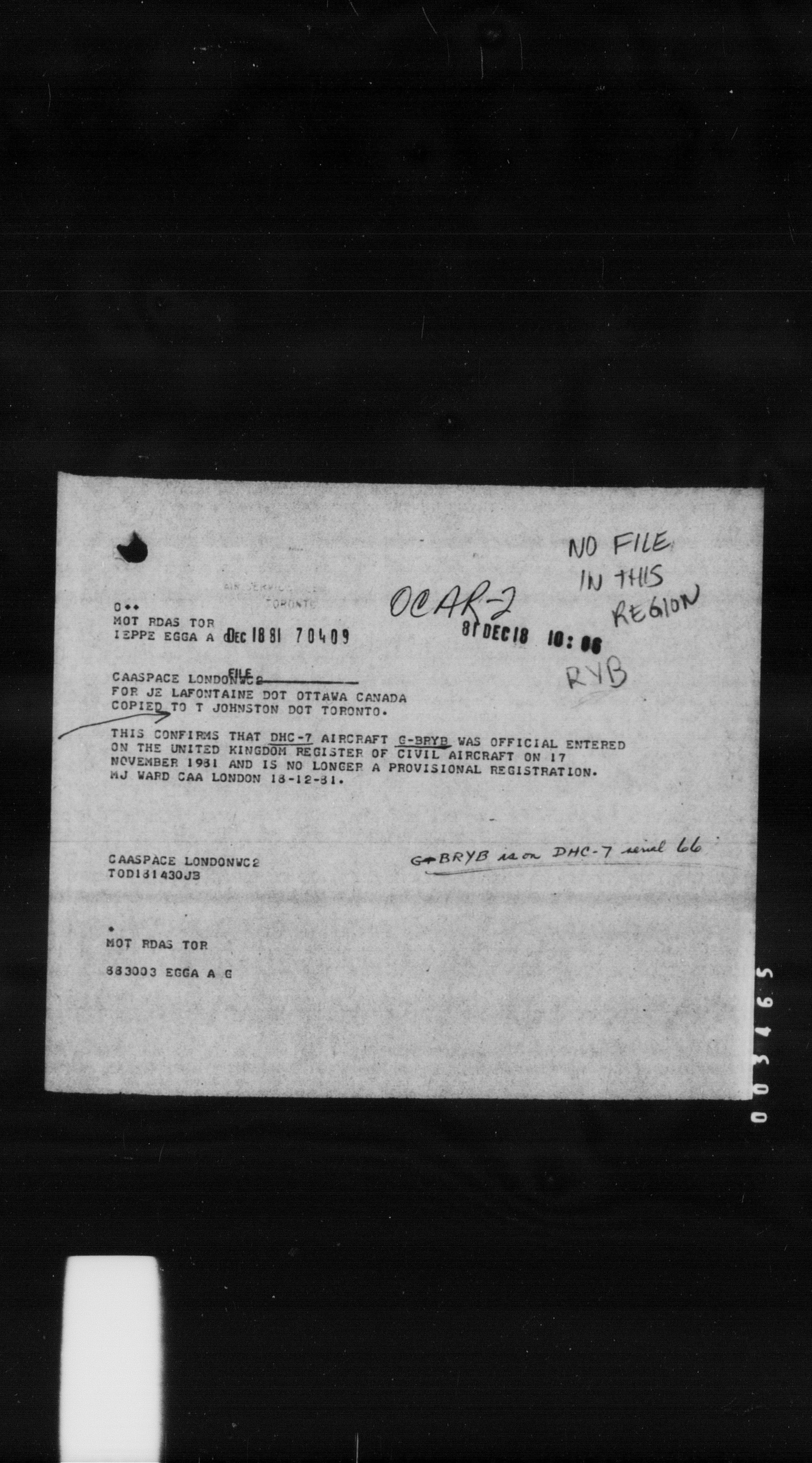 Department of Transport : Civil aircraft registration, inspection and operation files, block 5008, 1920-1986 - 8491