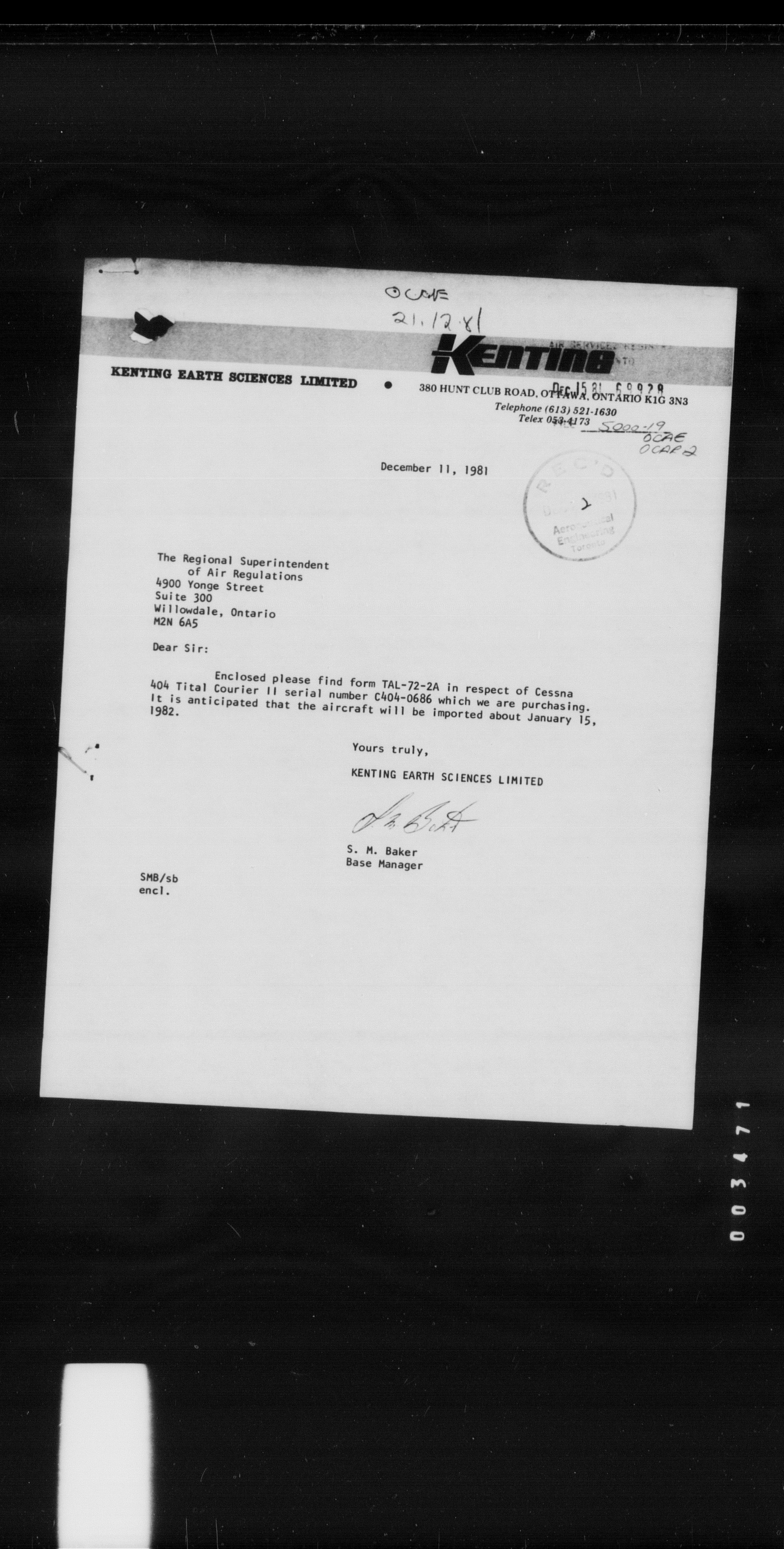 Department of Transport : Civil aircraft registration, inspection and operation files, block 5008, 1920-1986 - 8491