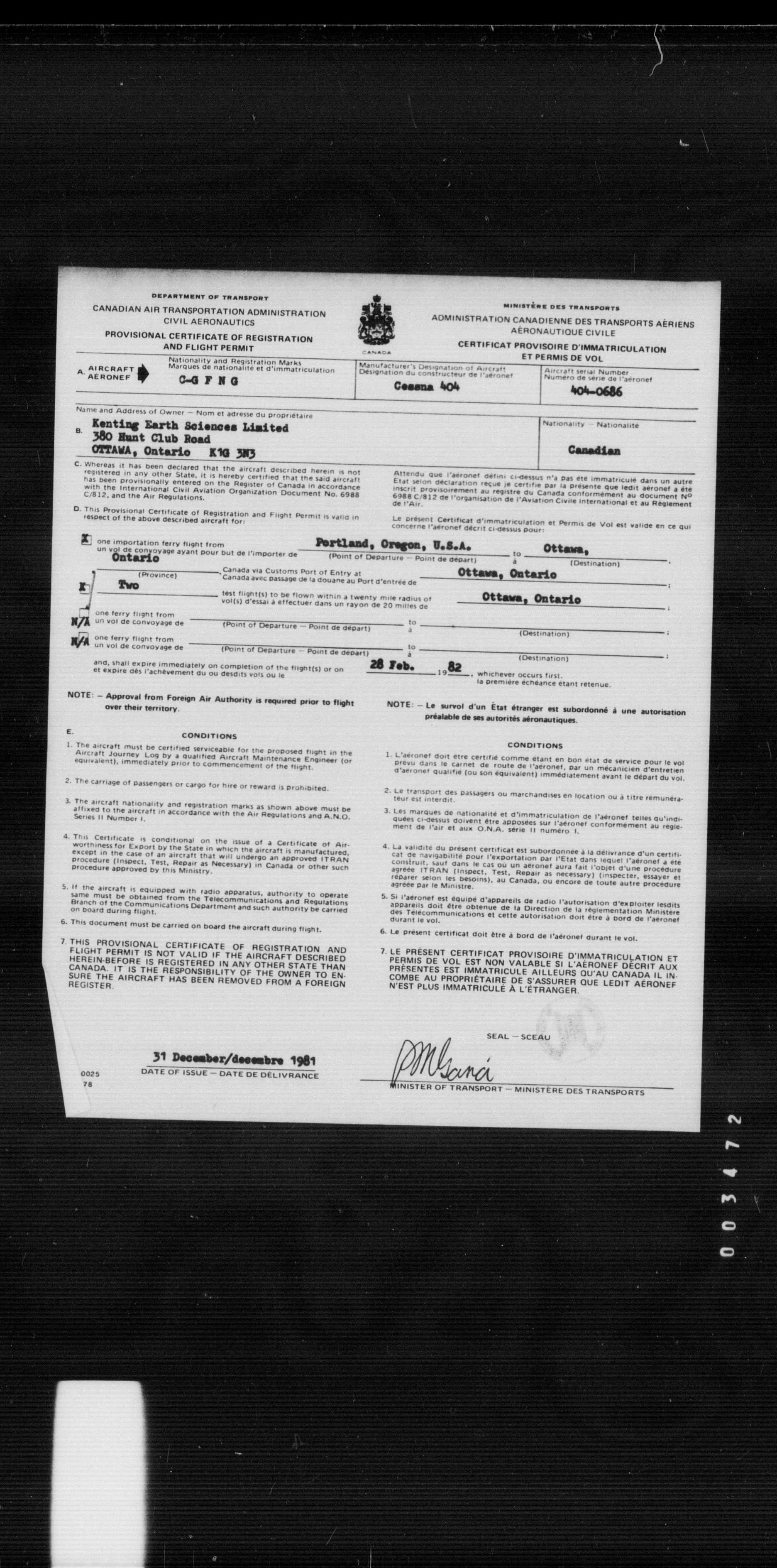 Department of Transport : Civil aircraft registration, inspection and operation files, block 5008, 1920-1986 - 8491