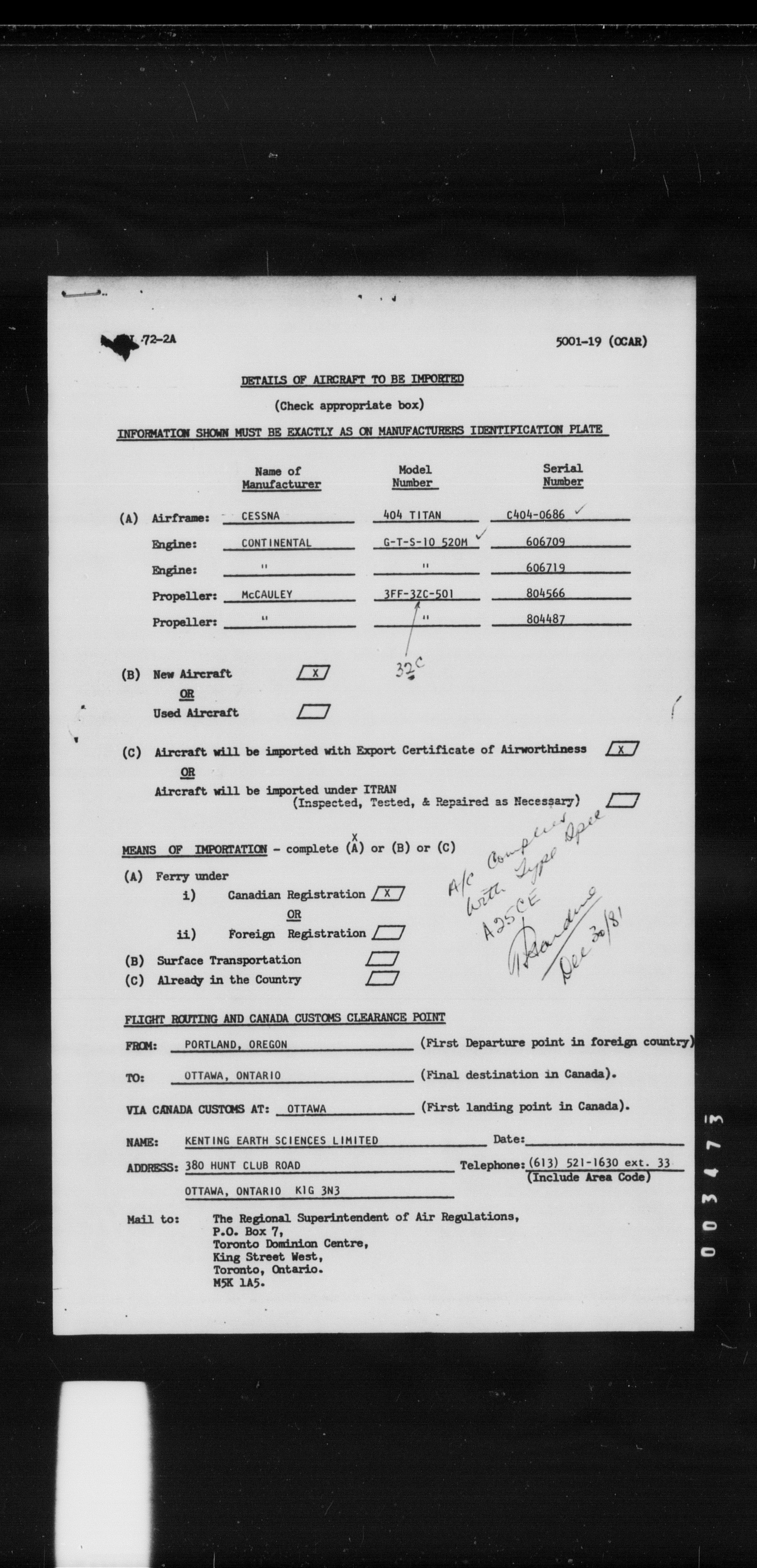 Department of Transport : Civil aircraft registration, inspection and operation files, 1920-1986 : T-8491