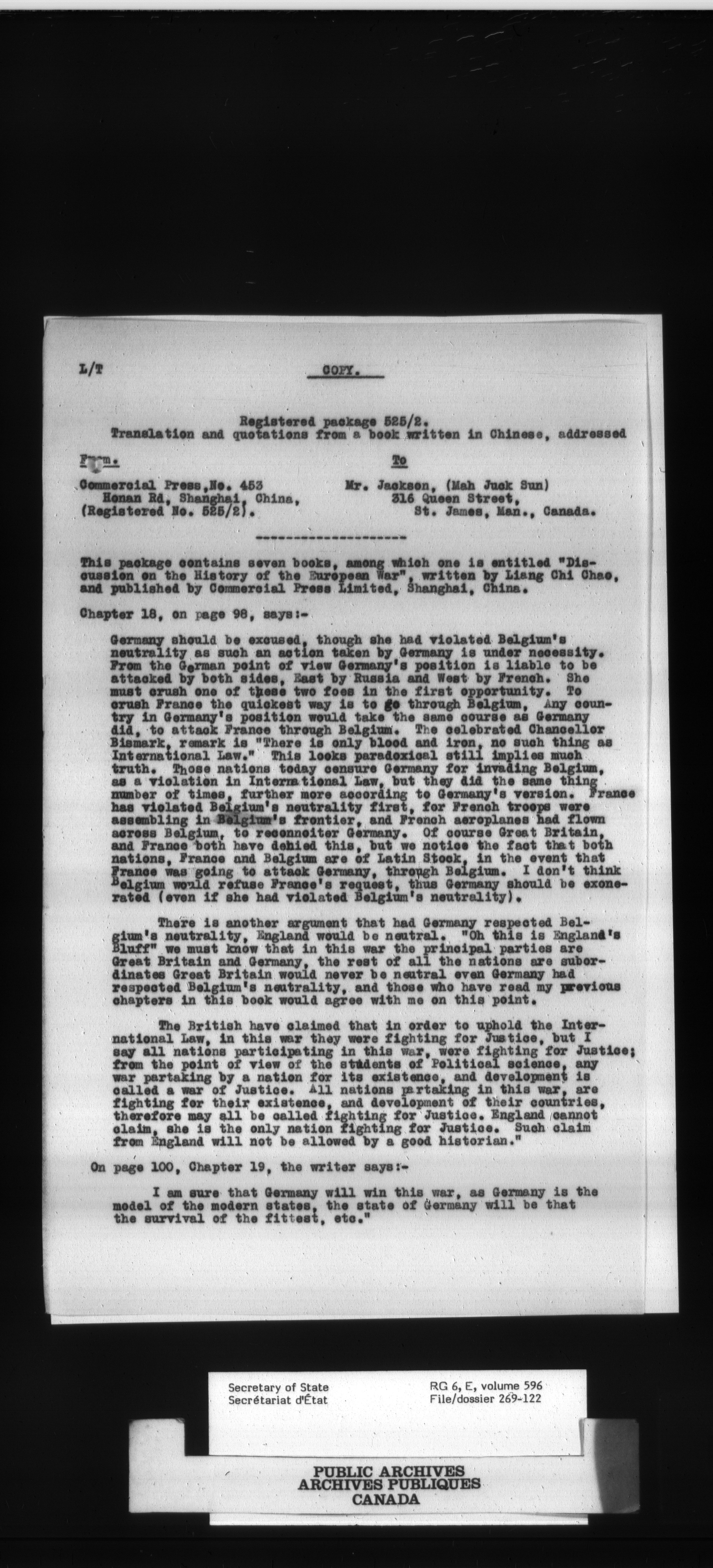 Secretary of State : Chief Press Censor, 1915-1920 - 85