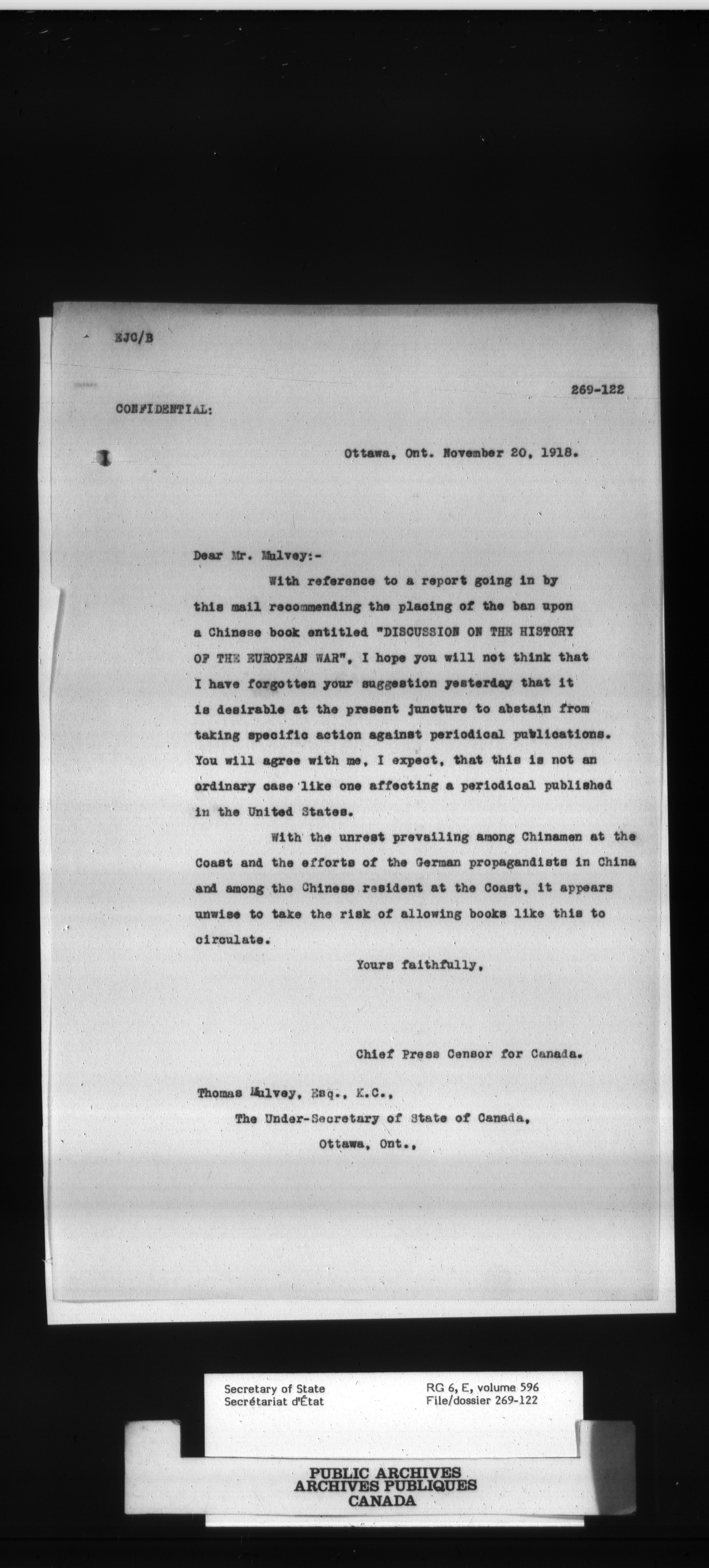 Secretary of State : Chief Press Censor, 1915-1920 - 85