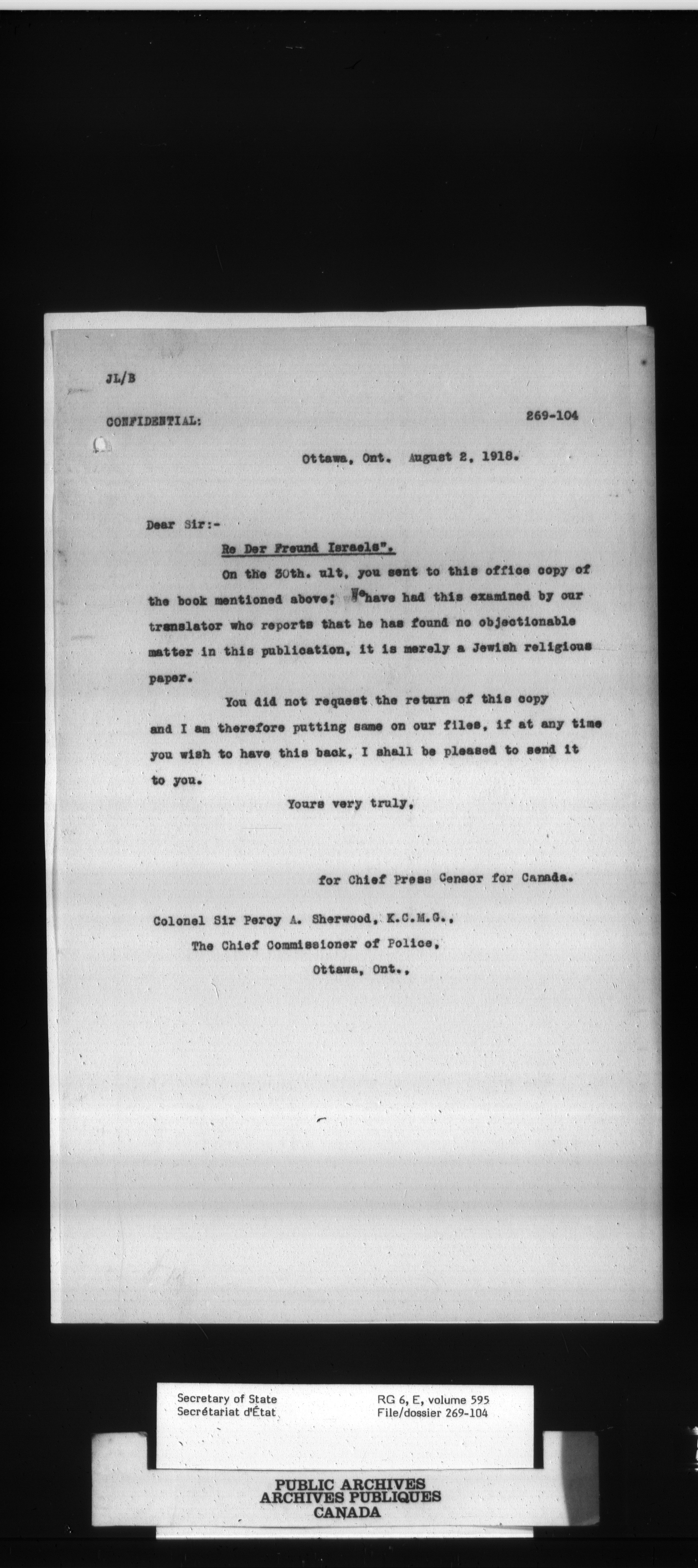 Secretary of State : Chief Press Censor, 1915-1920 - 85