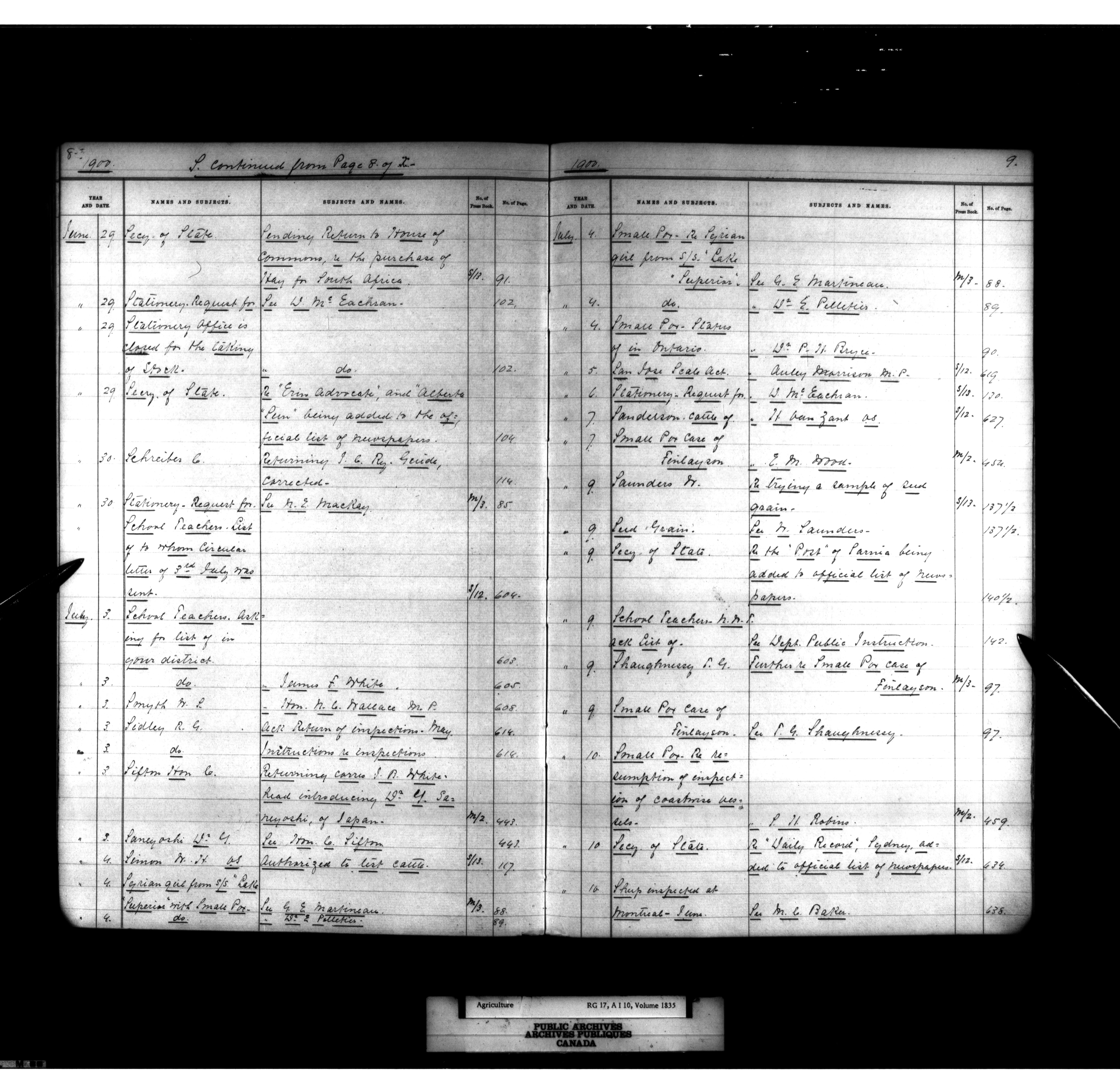 Department of Agriculture : Deputy Minister's letterbooks, 1888-1916 - 853