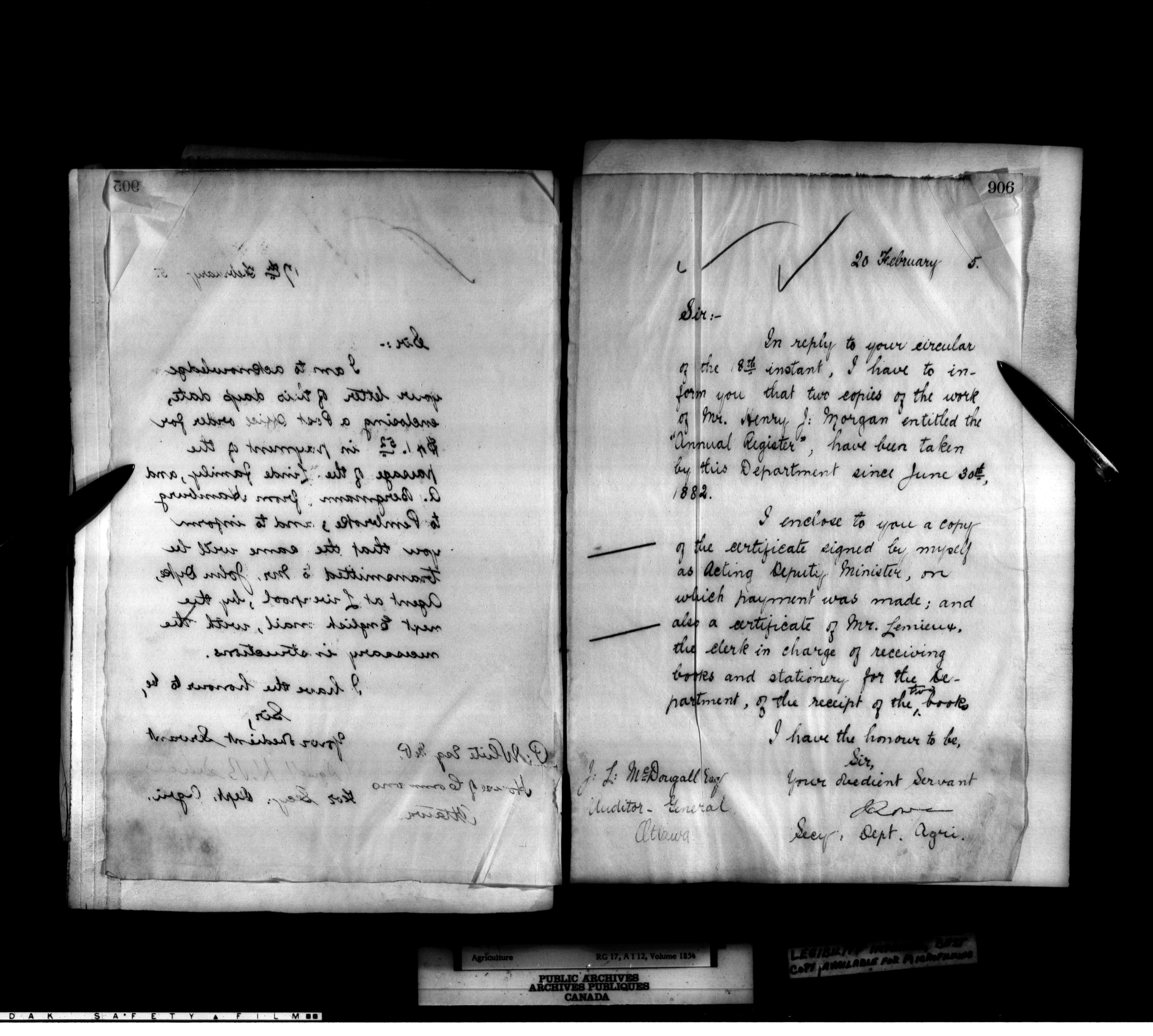 Department of Agriculture : Secretary and Assistant Deputy Minister's letterbooks, 1881-1916 - 860