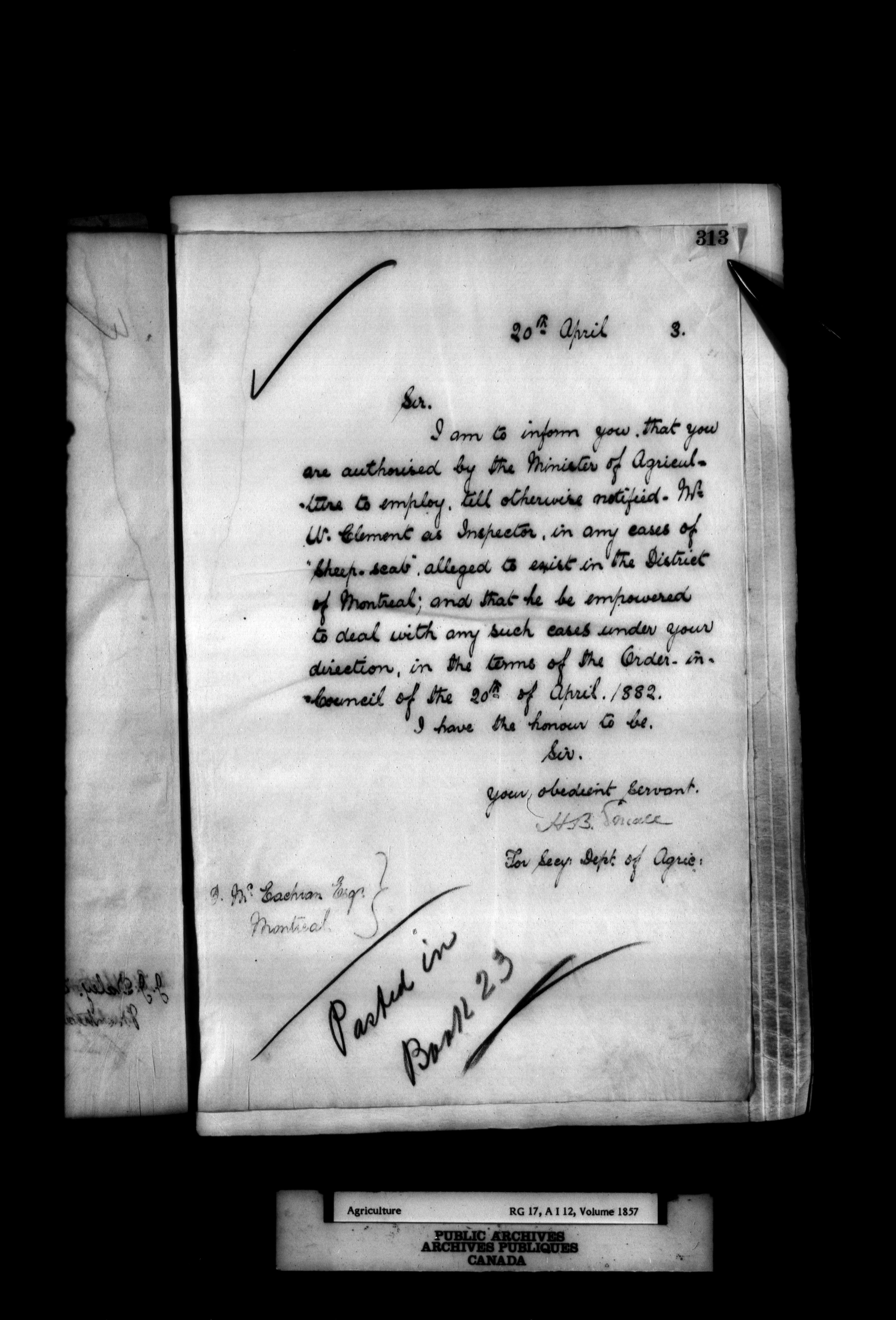 Department of Agriculture : Secretary and Assistant Deputy Minister's letterbooks, 1881-1916 - 861