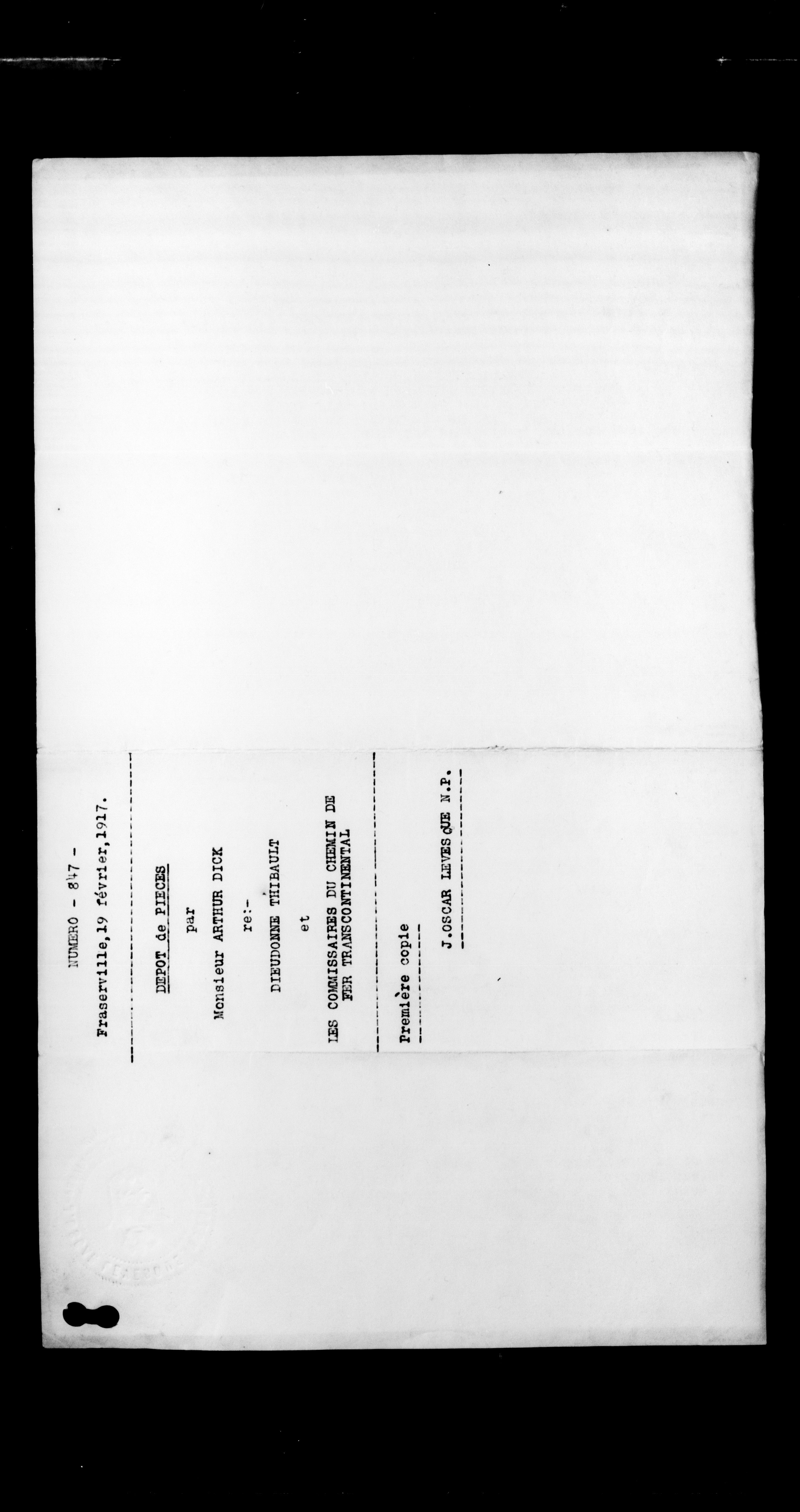 Department of Railways and Canals, Legal records : Commissioners of the Transcontinental Railway - 8638
