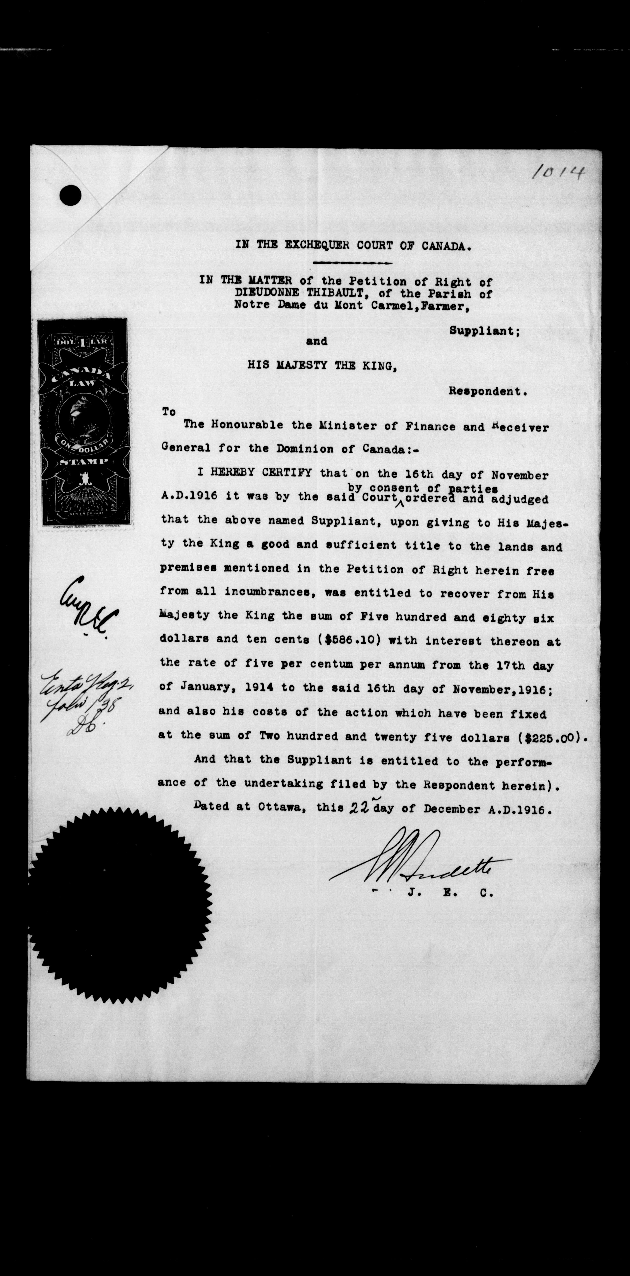 Department of Railways and Canals, Legal records : Commissioners of the Transcontinental Railway - 8638
