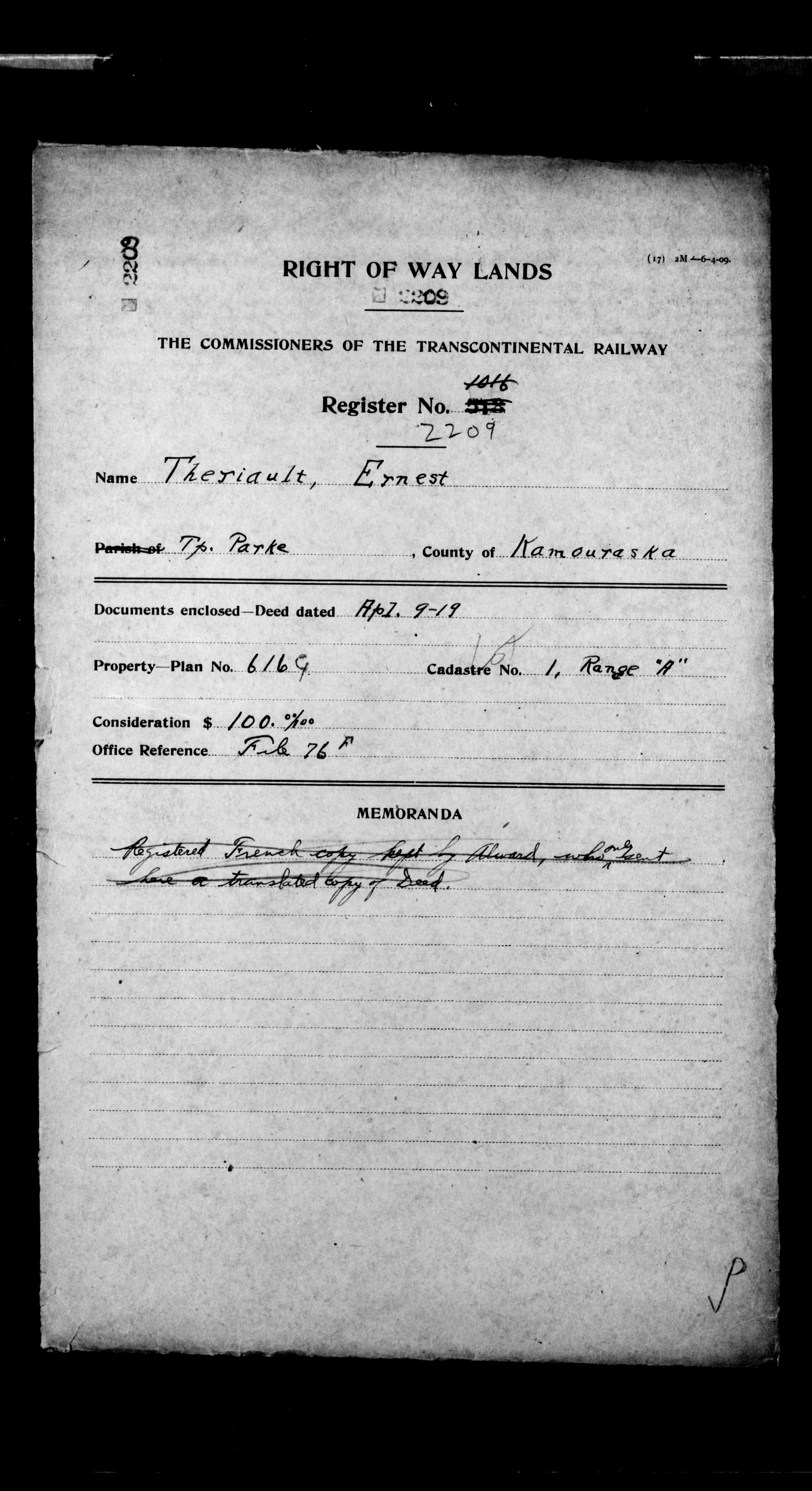Department of Railways and Canals, Legal records : Commissioners of the Transcontinental Railway - 8638