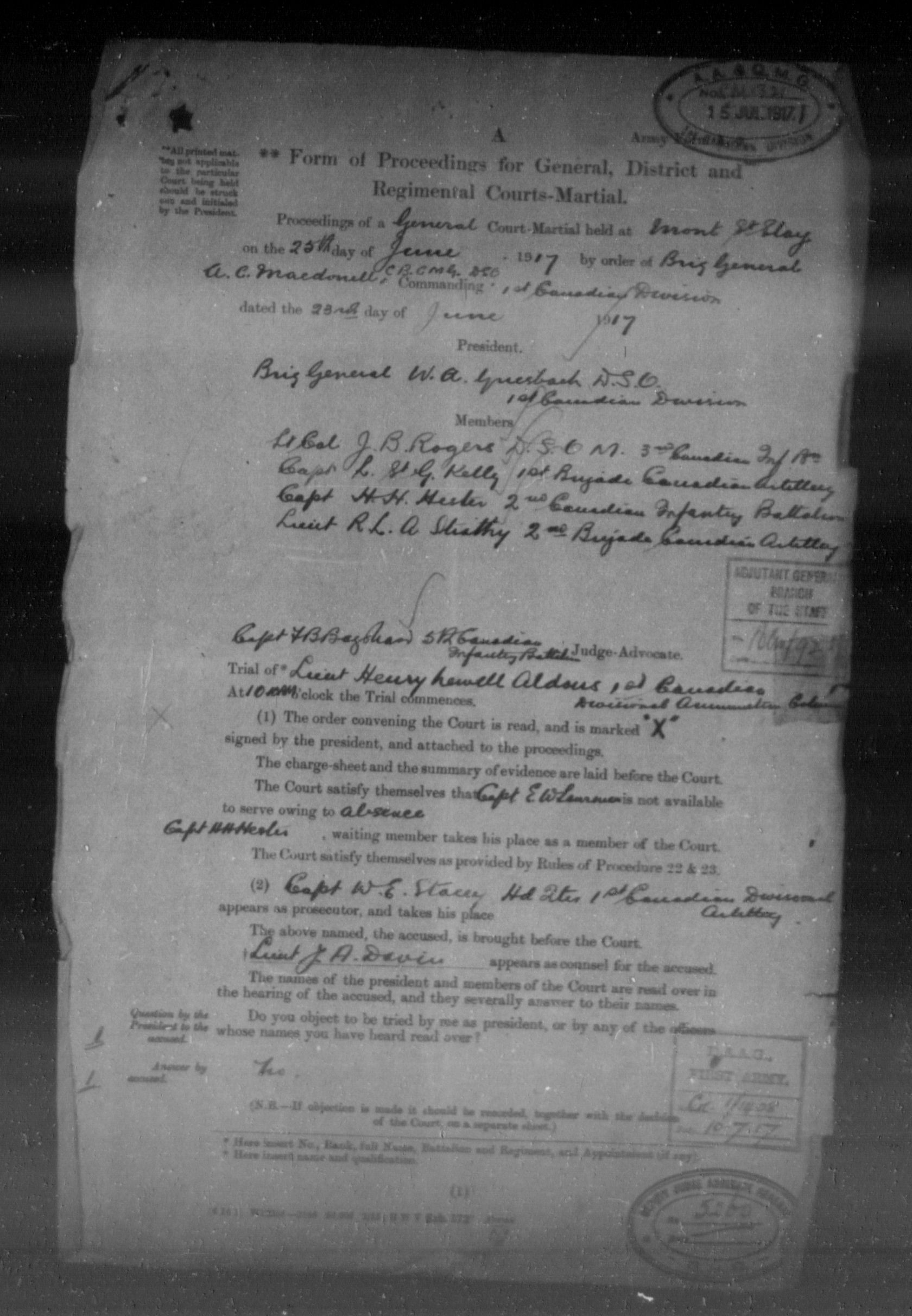 LOST - asked for 2015-09-18Ministry of the Overseas Military Forces of Canada : Courts martial records, 1914-1919 - 8651