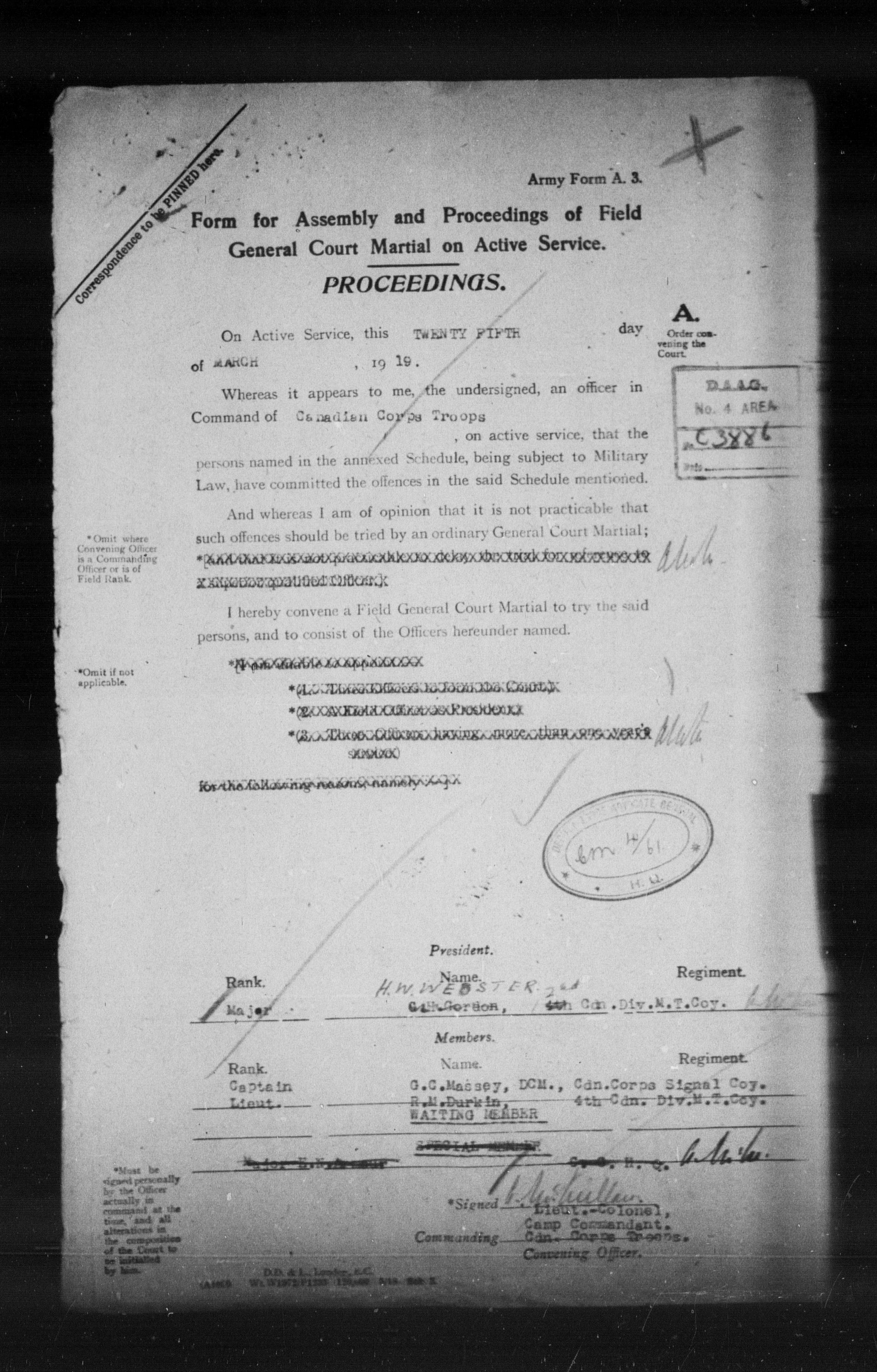 Ministry of the Overseas Military Forces of Canada : Courts martial records, 1914-1919 - 8657