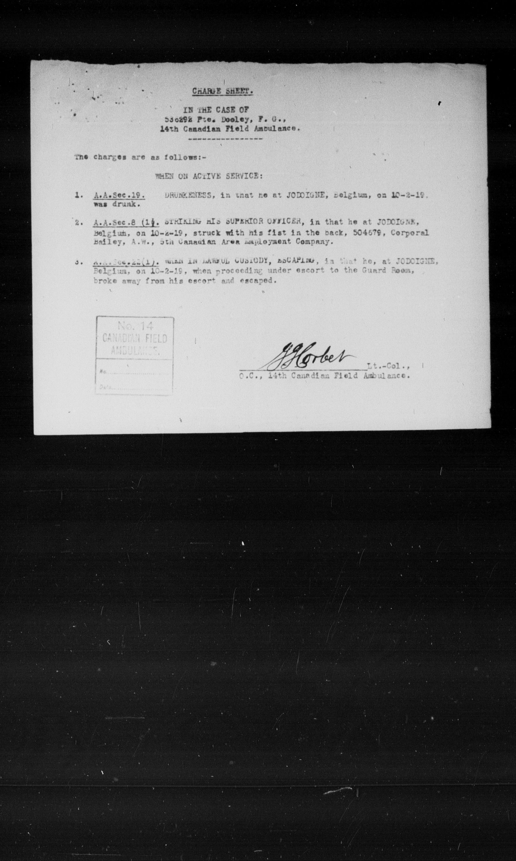 Ministry of the Overseas Military Forces of Canada : Courts martial records, 1914-1919 - 8657