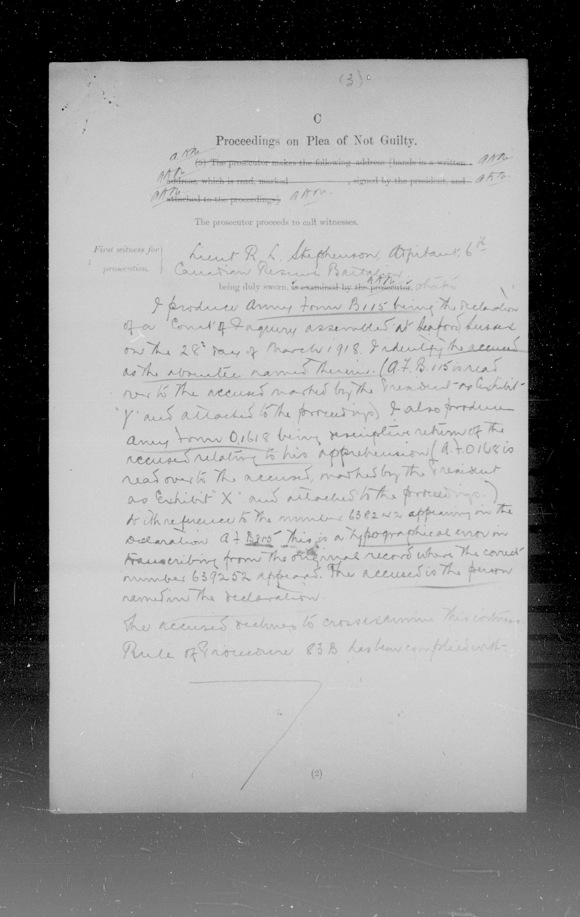 Ministry of the Overseas Military Forces of Canada : Courts martial records, 1914-1919 - T-8658