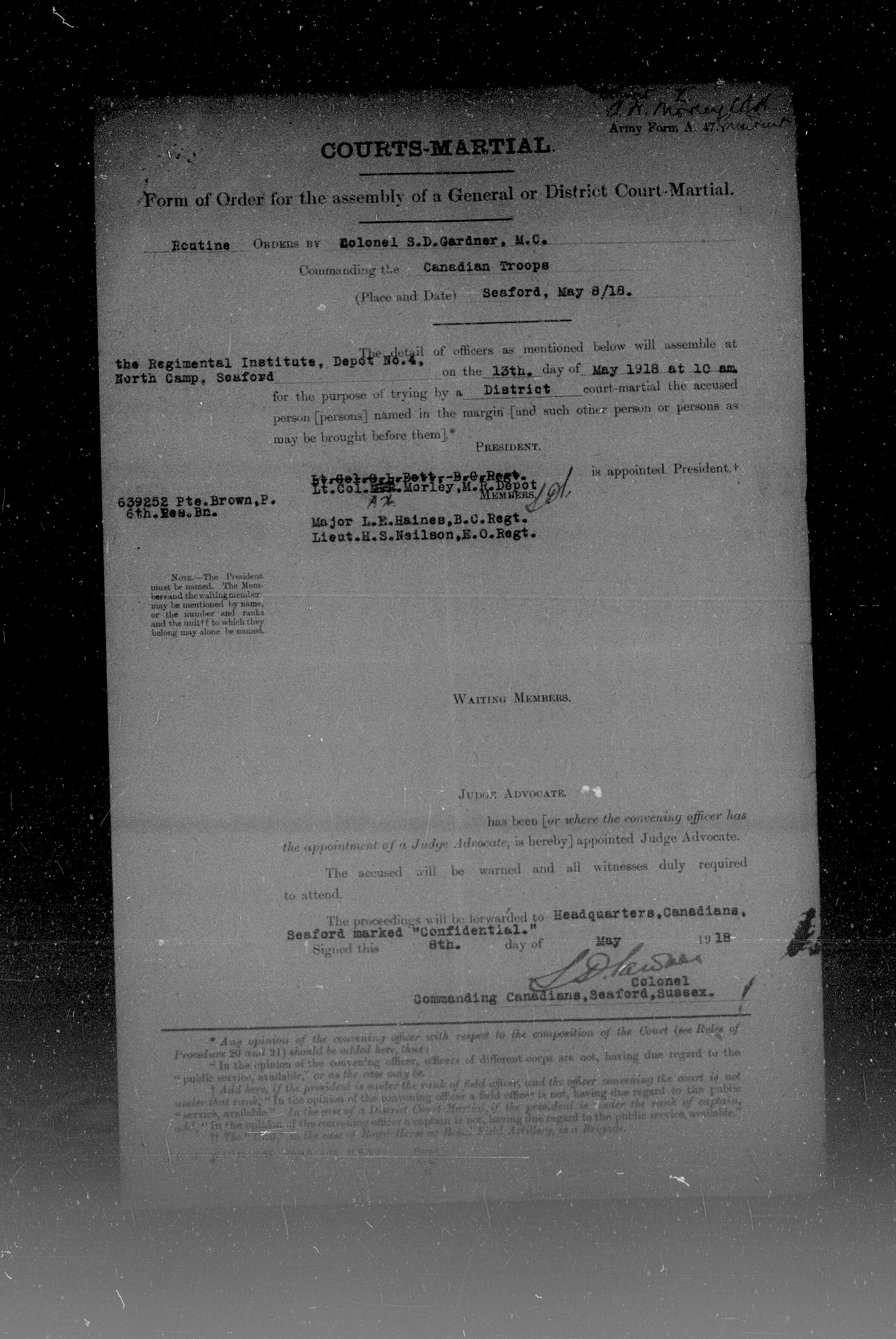 Ministry of the Overseas Military Forces of Canada : Courts martial records, 1914-1919 - T-8658