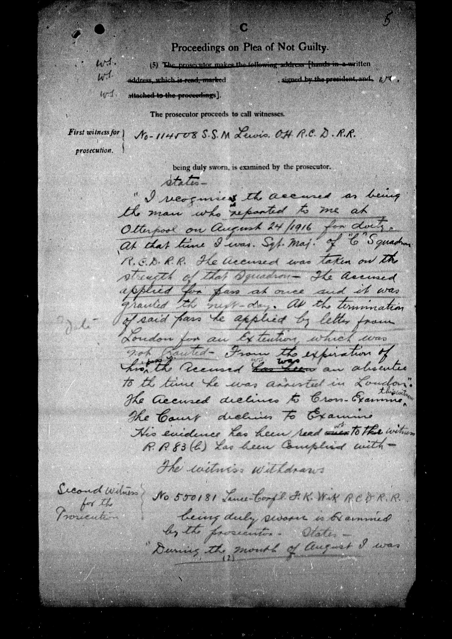 Ministry of the Overseas Military Forces of Canada : Courts martial records, 1914-1919 : T-8665