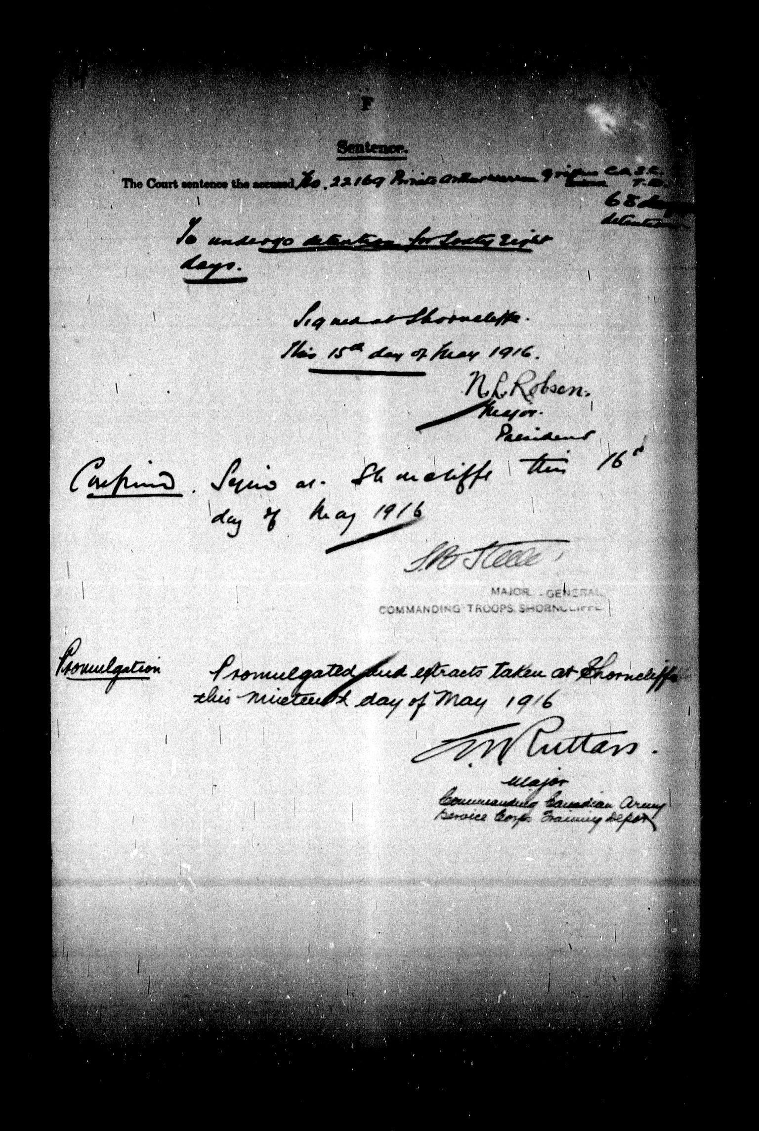 Ministry of the Overseas Military Forces of Canada : Courts martial records, 1914-1919 - 8667