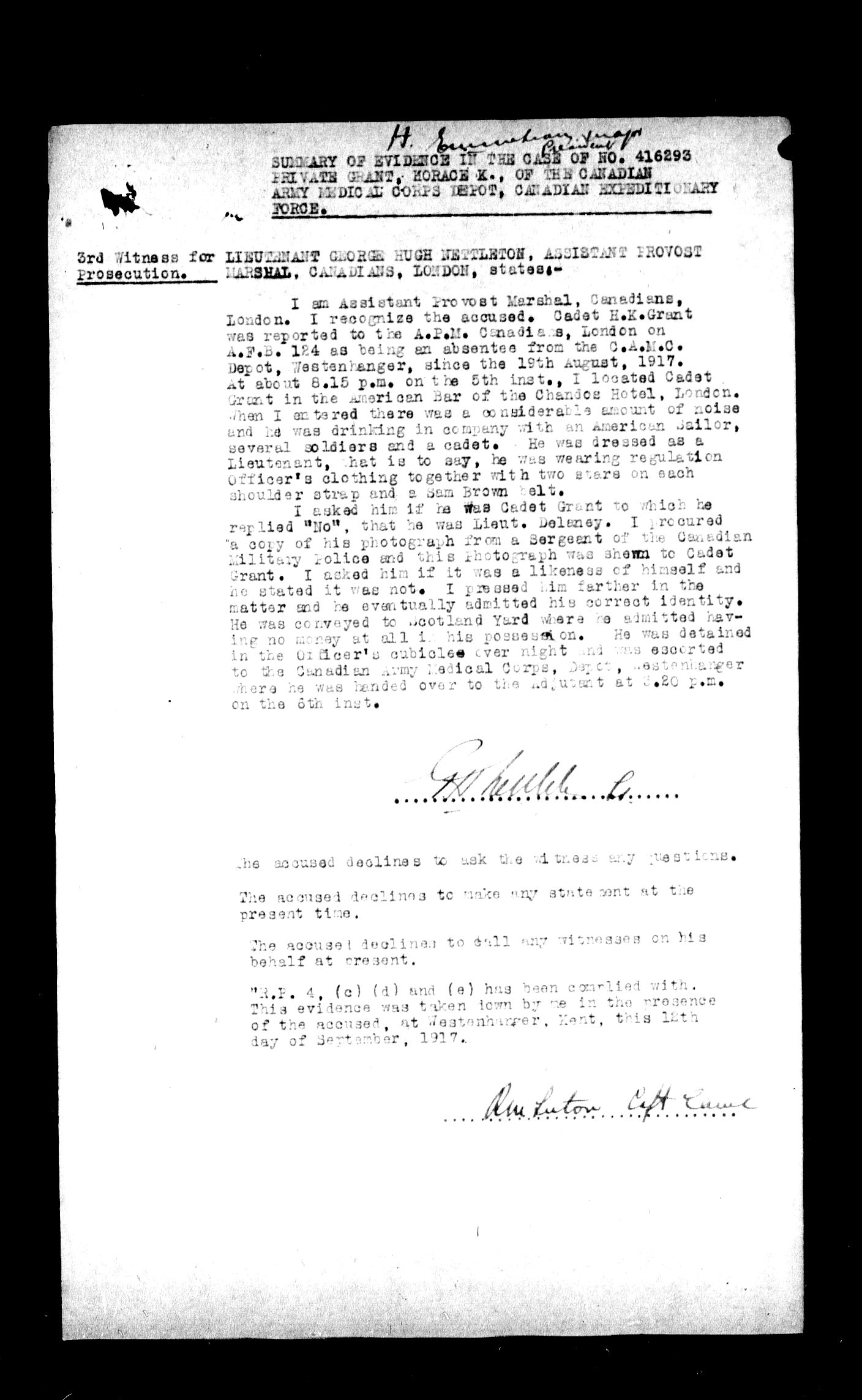 Ministry of the Overseas Military Forces of Canada : Courts martial records, 1914-1919 - 8667
