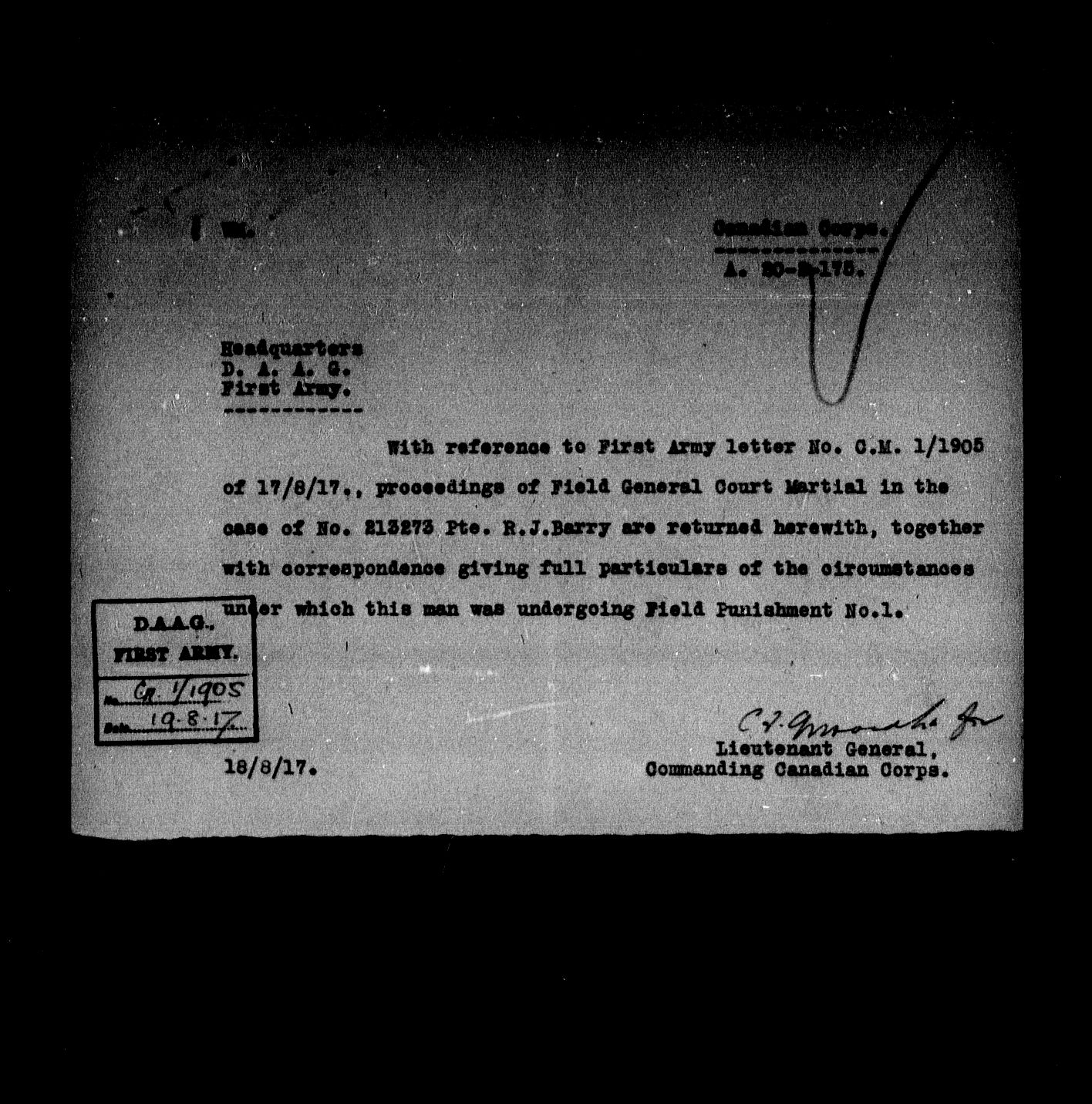 Ministry of the Overseas Military Forces of Canada : Courts martial records, 1914-1919 - 8668