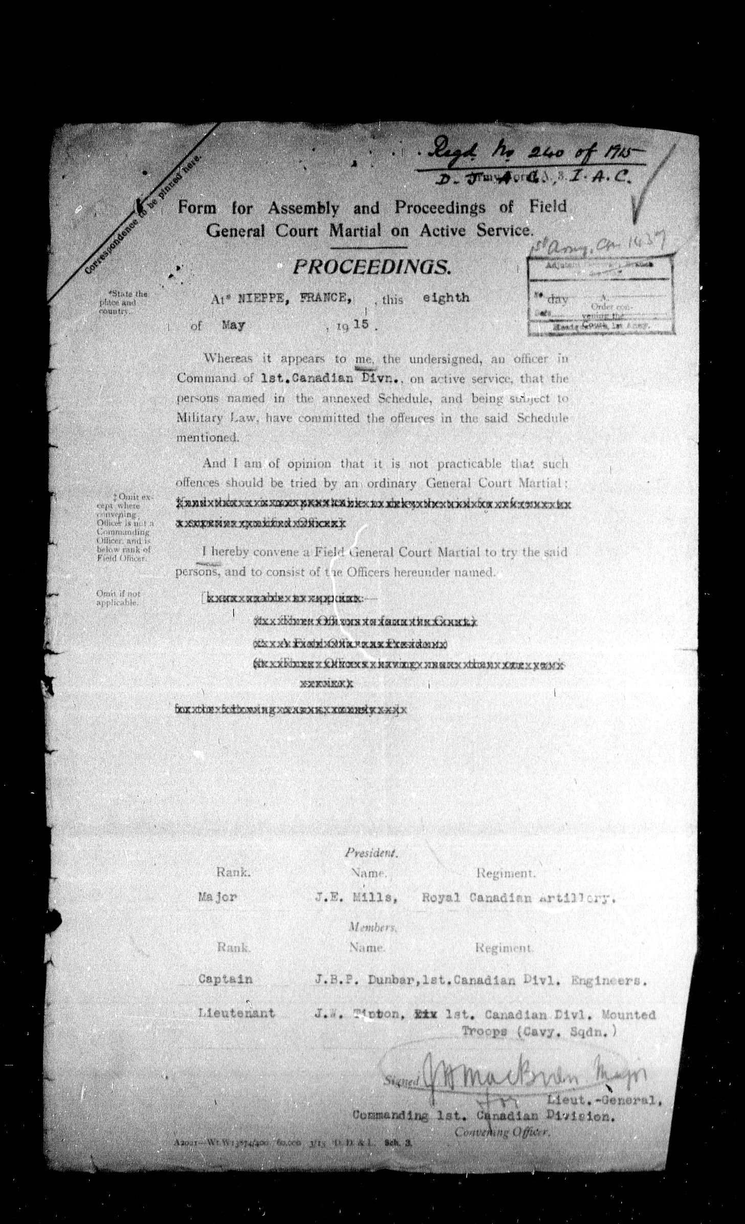 Ministry of the Overseas Military Forces of Canada : Courts martial records, 1914-1919 : T-8668