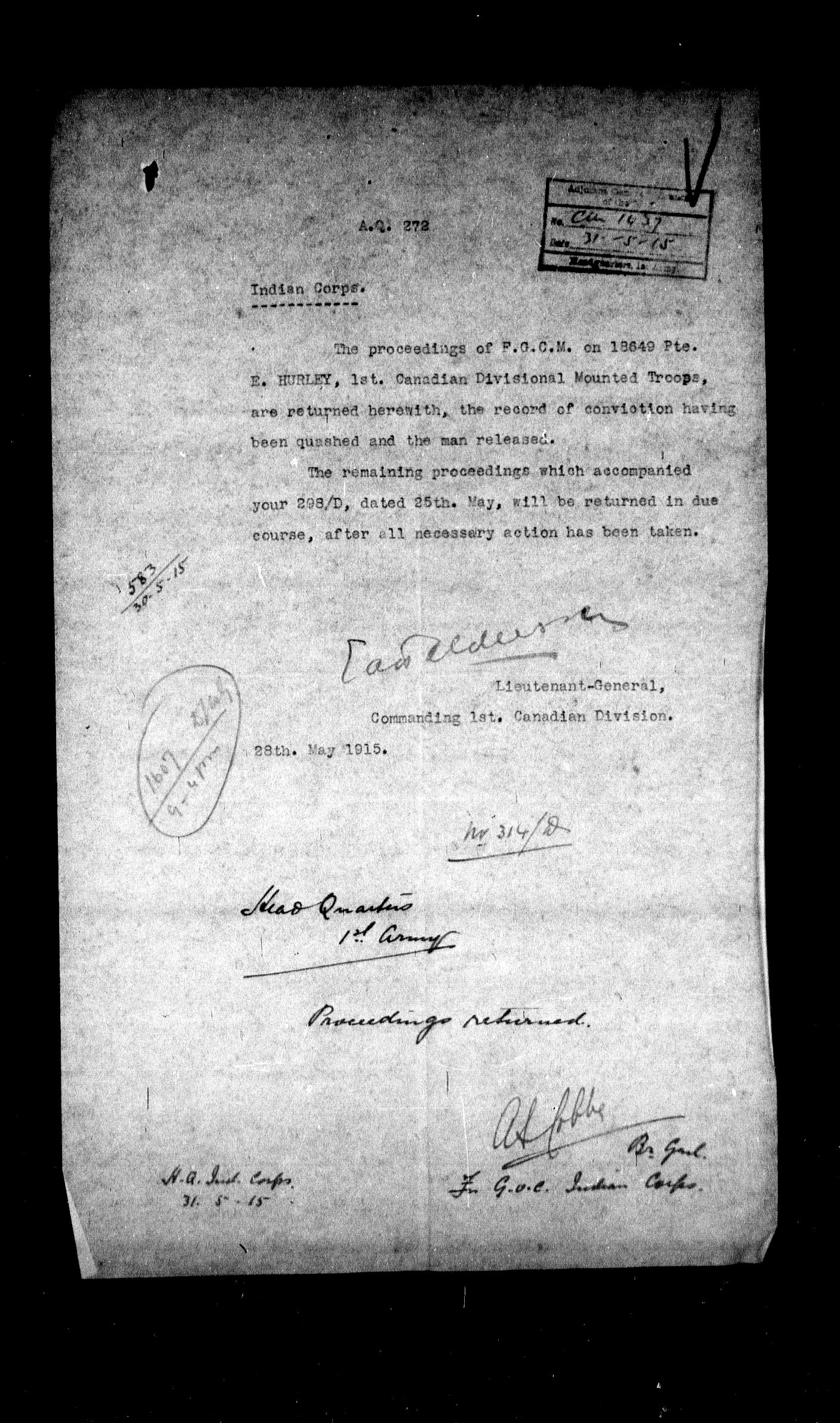 Ministry of the Overseas Military Forces of Canada : Courts martial records, 1914-1919 - 8668