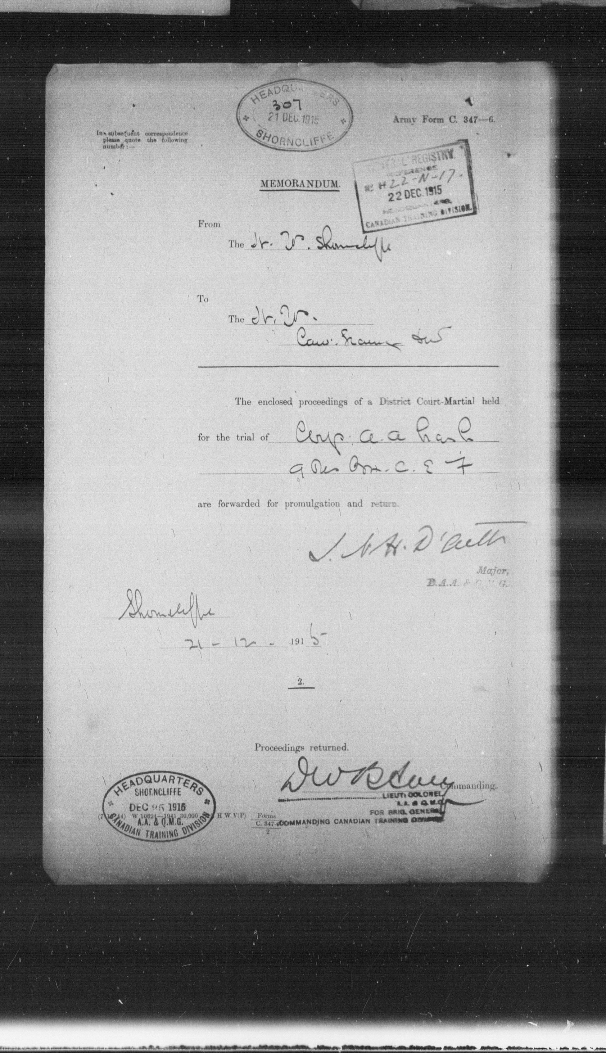 Ministry of the Overseas Military Forces of Canada : Courts martial records, 1914-1919 - 8673